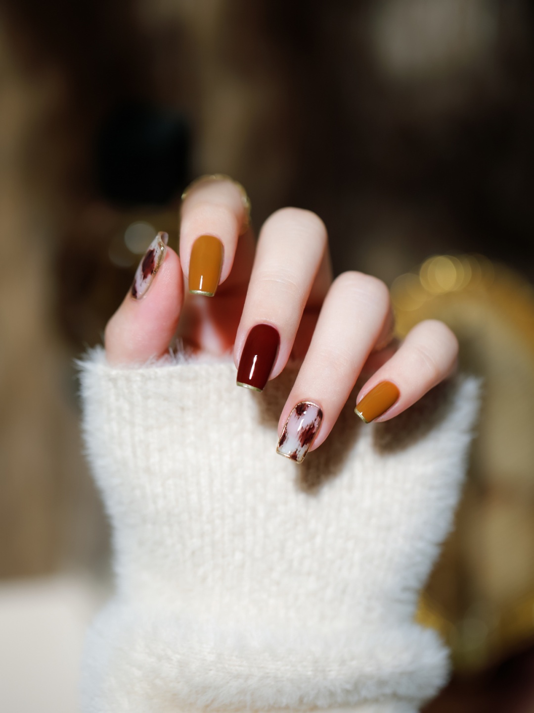 秋冬🍂枫叶棕黄🍁与棕红豹纹美甲