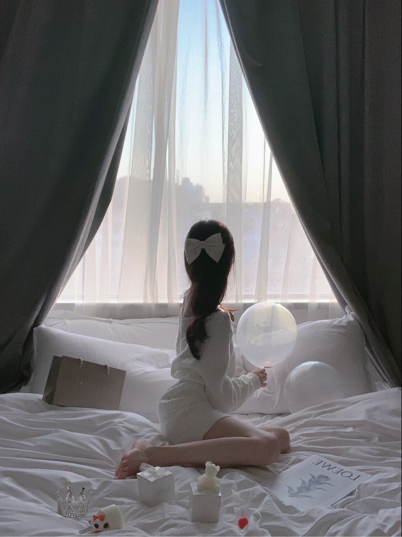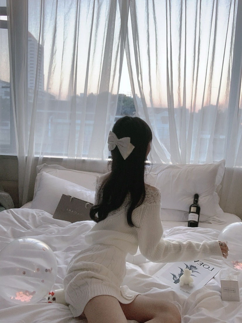 场景:酒店选择观景房,把床搬移到靠窗的位置,床单枕头一定要白色⚪️