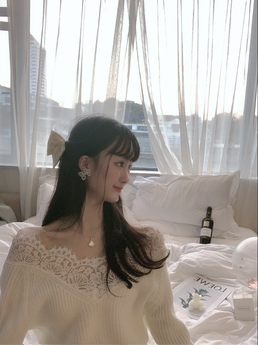 穿搭:选择浅色系,跟场景要协调,配上奶白色蝴蝶结头饰,又纯又欲,甜度爆棚!