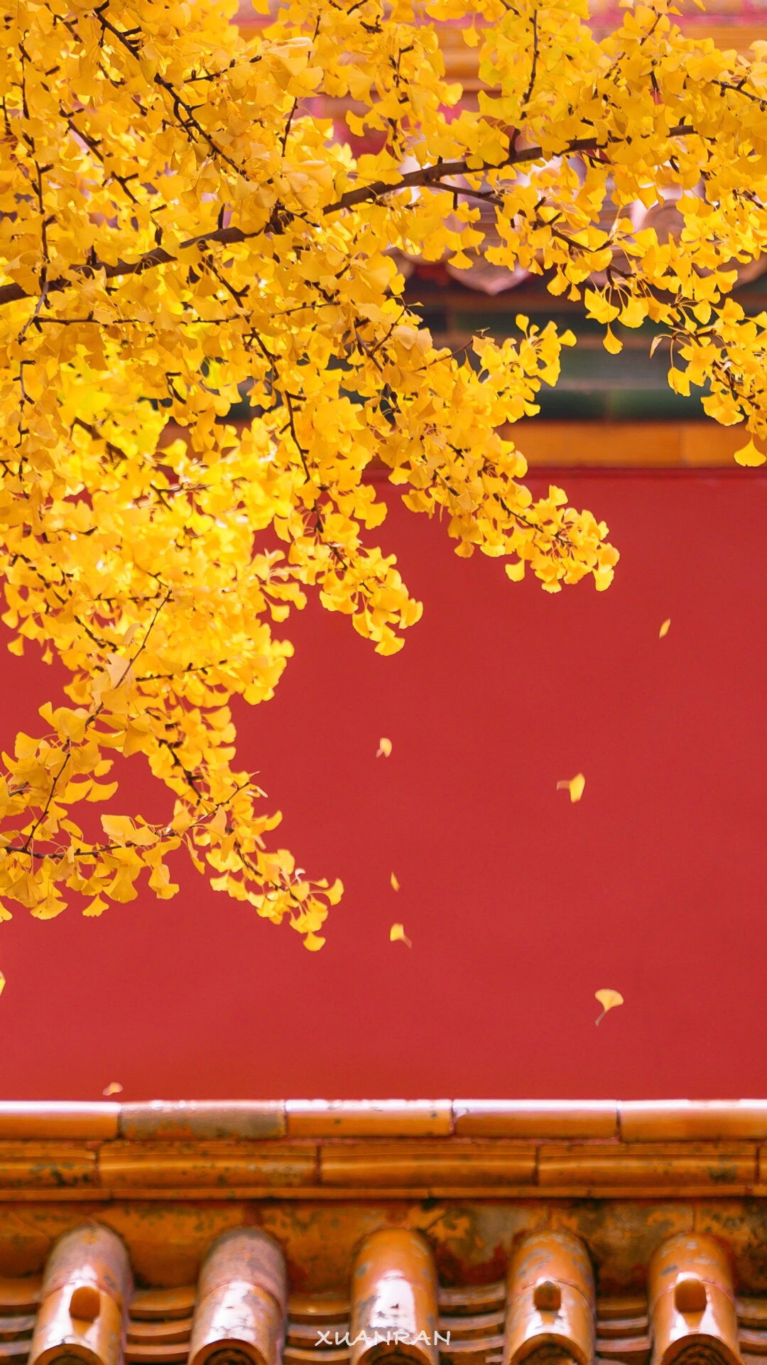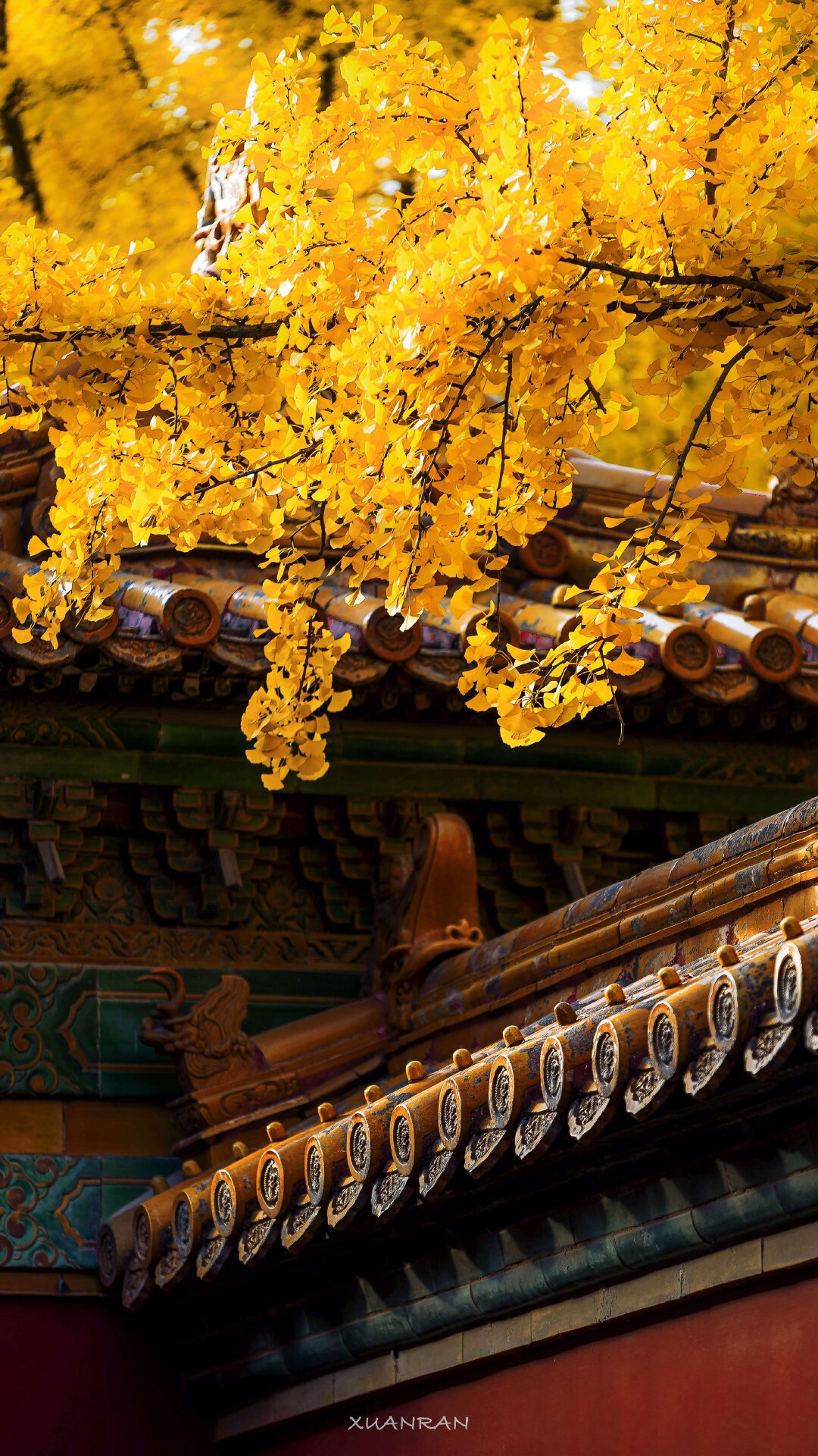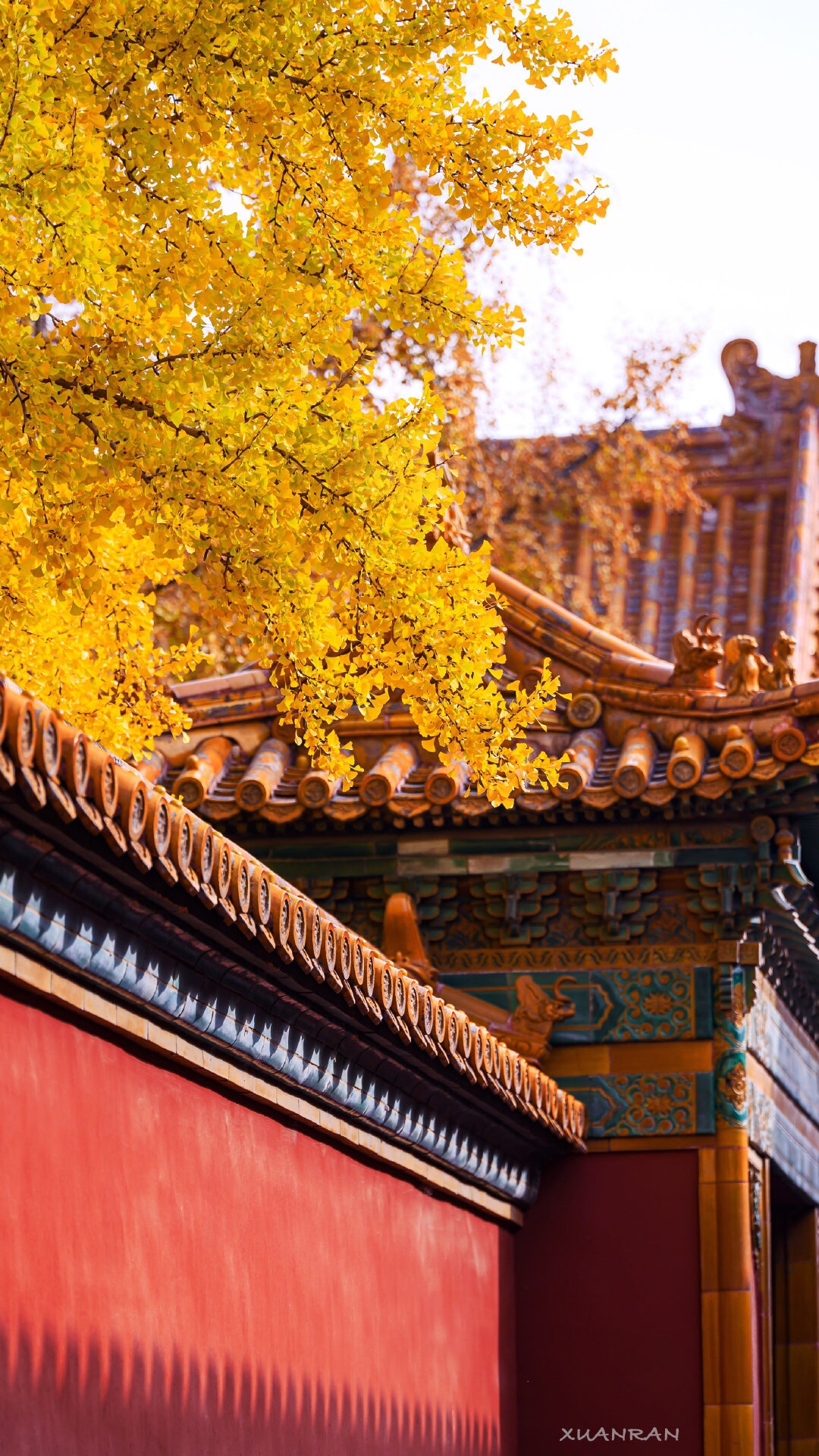 红墙银杏黄,故宫秋色漾。