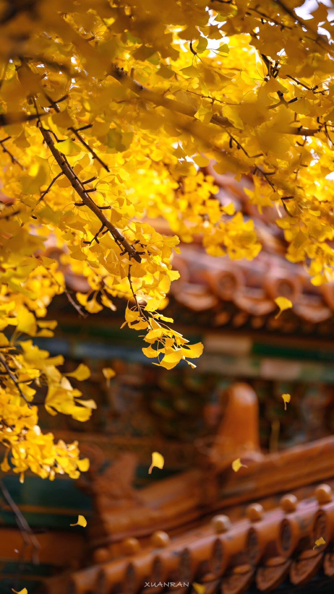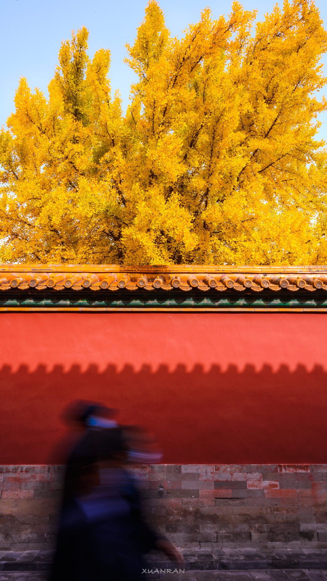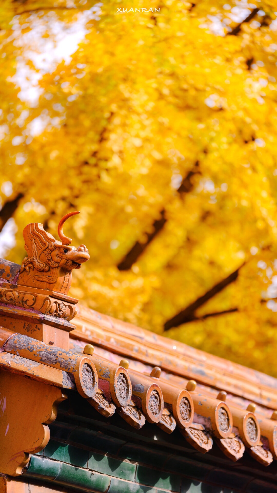 红墙银杏黄,故宫秋色漾。