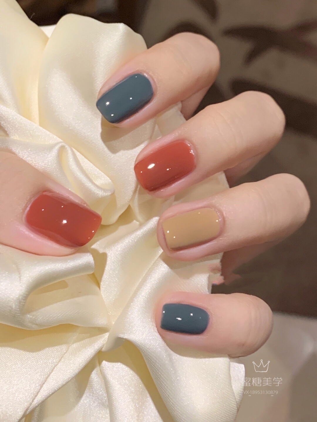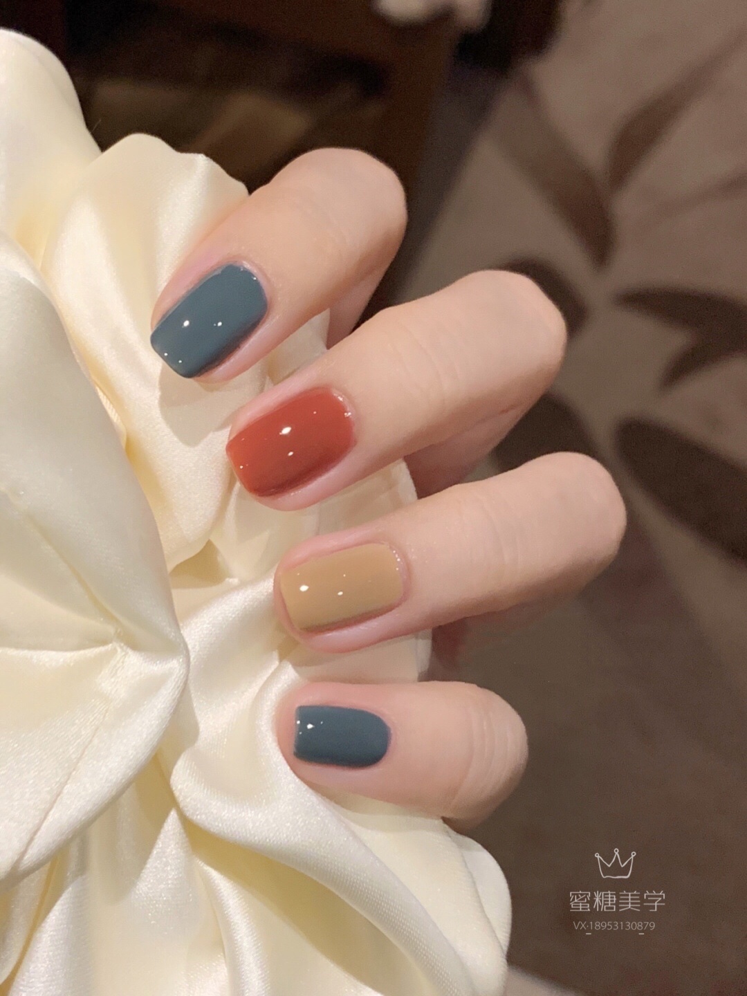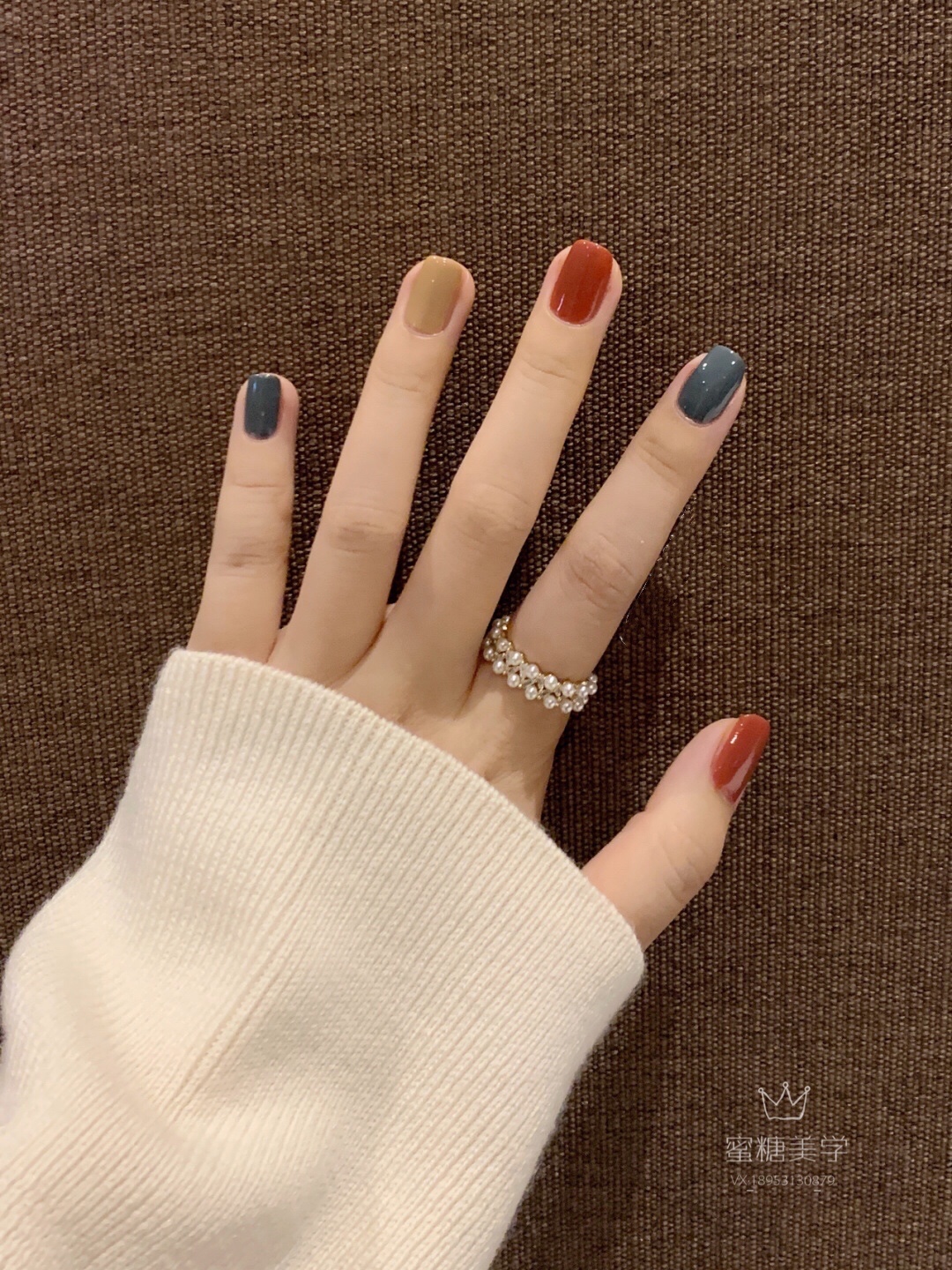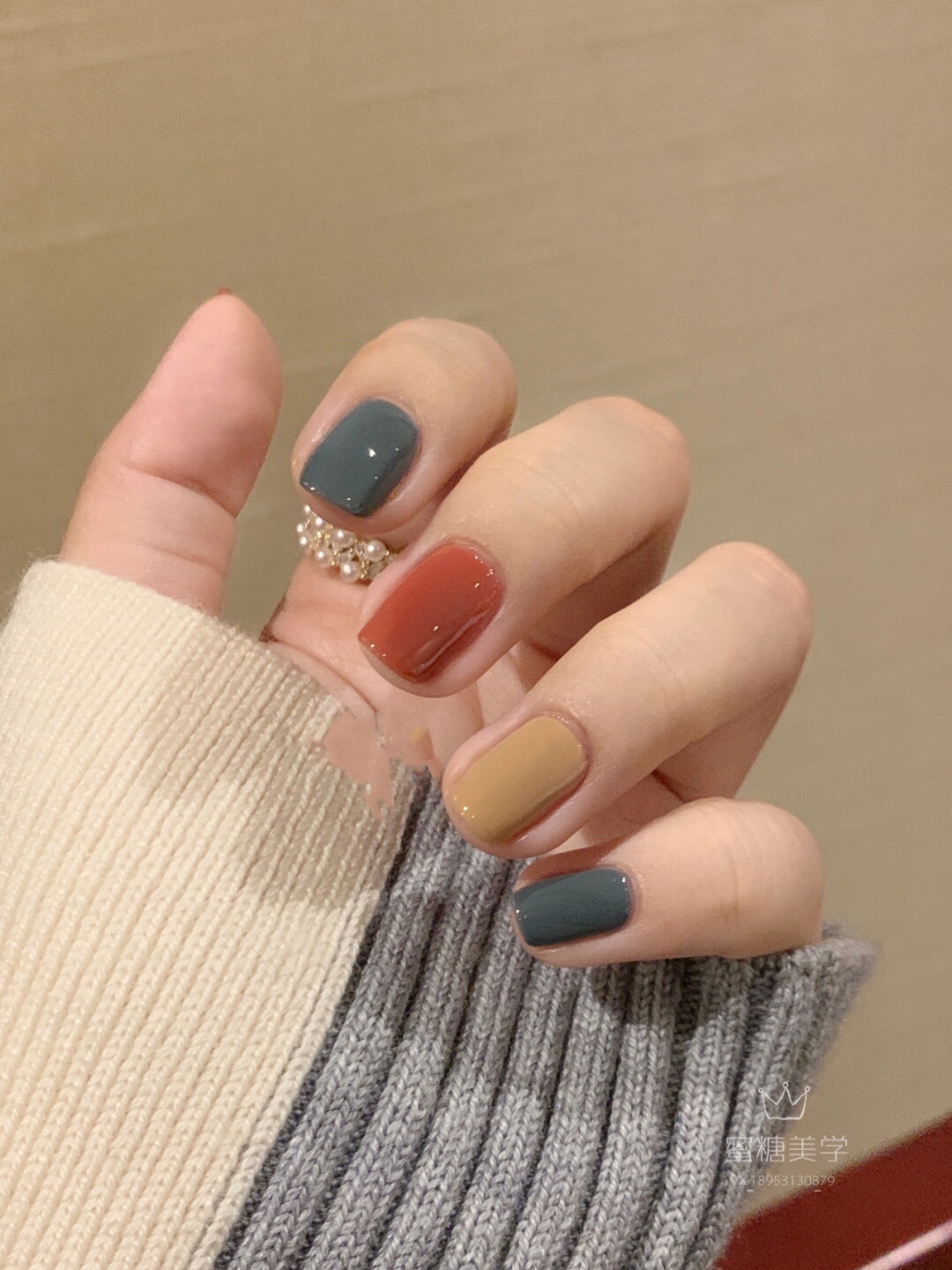 玫瑰黛青暖咖🌹秋冬时尚撞色美甲