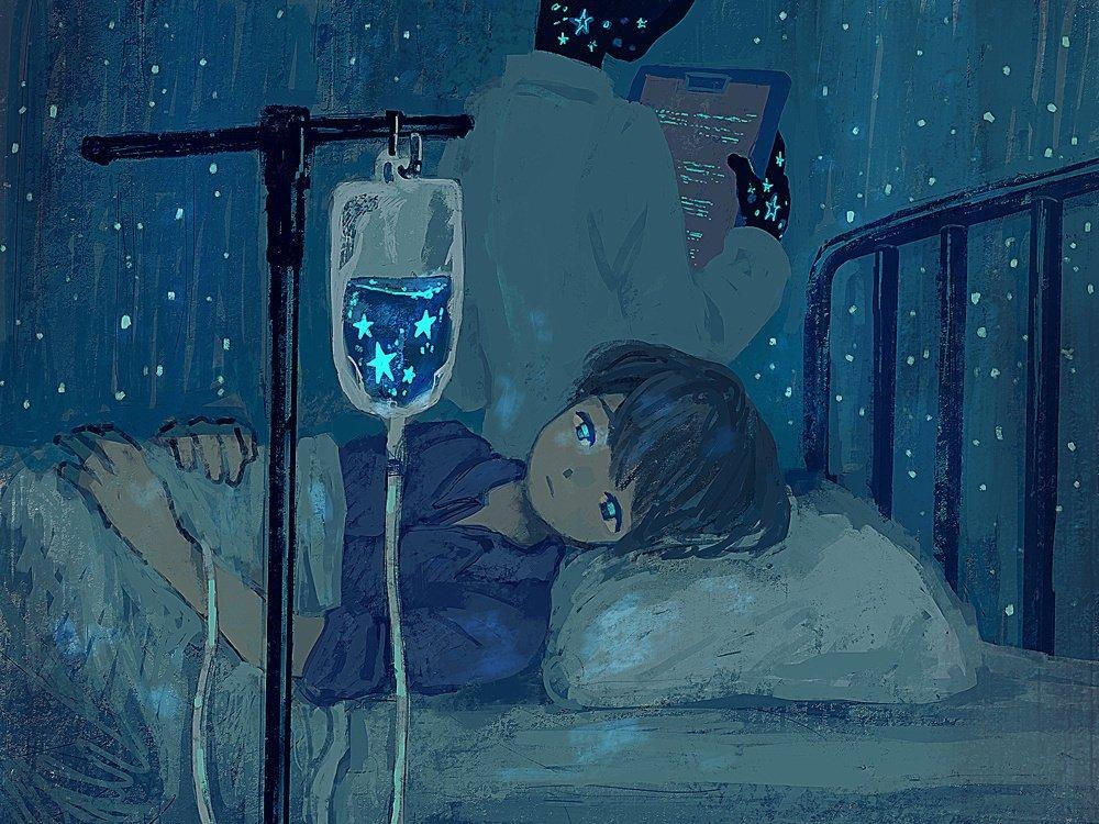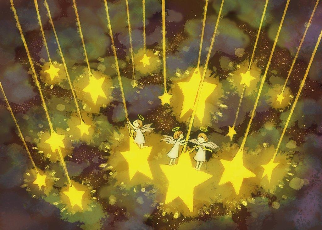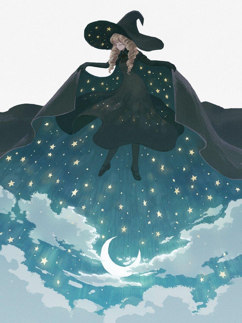#插画# #艺术# 唯美的梦境插画,星星承载着每个人的梦境,温柔的意境,爱了。