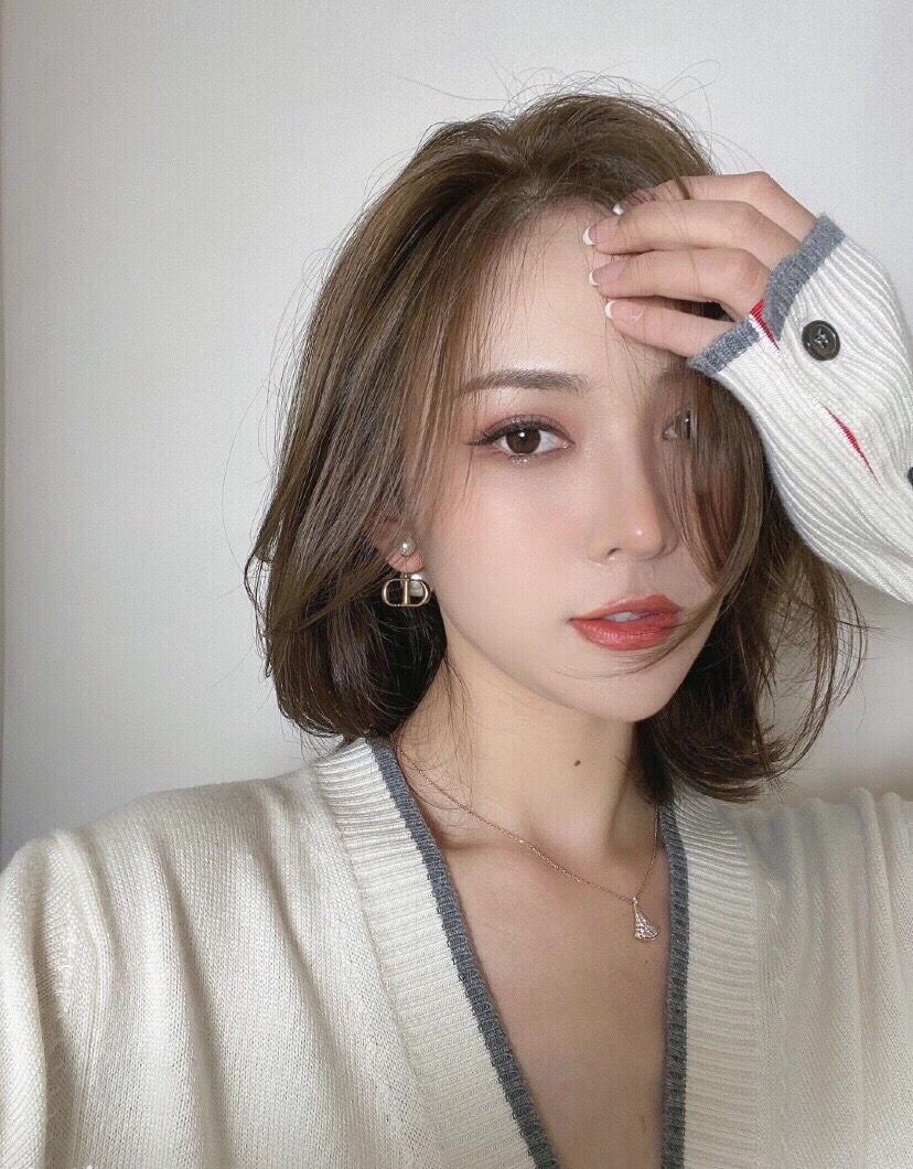锁骨发纹理烫.搭配亚麻色.简单易打理.知性中带点俏皮感😝