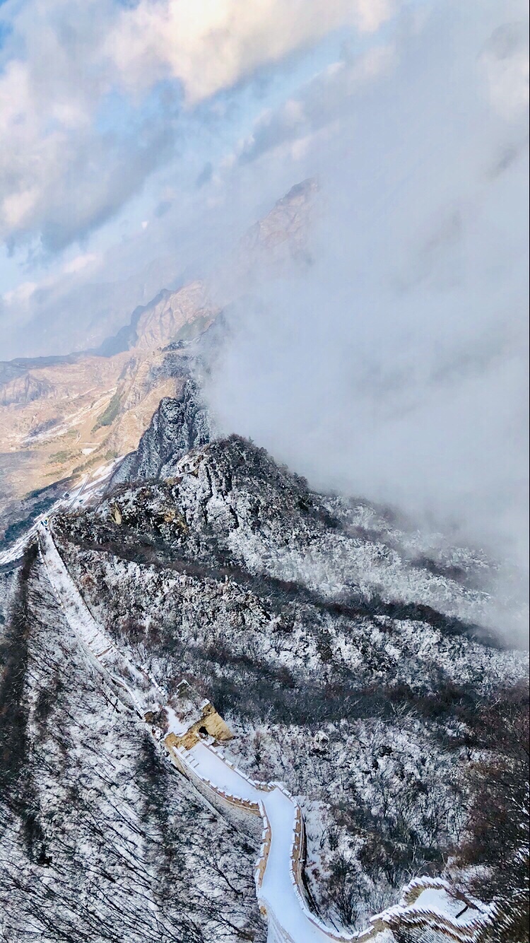 当天迎着初雪攀登的野长城,好在天公作美,长城蜿蜒,云海翻腾,在一片白色的世界里,每一张帧画面都美到震撼人心。