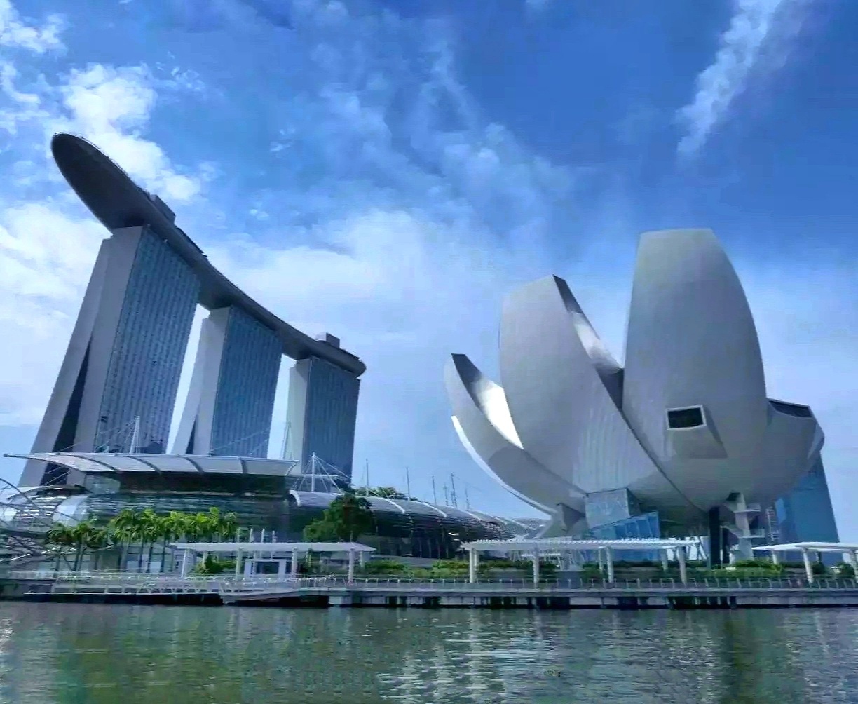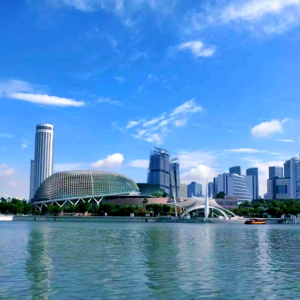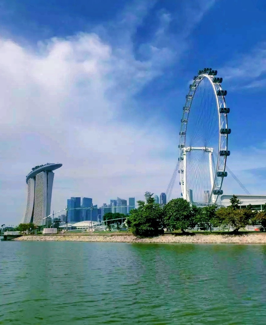 狮城水天一色的滨海湾,沿岸有新加坡标志性建筑-鱼尾狮雕像、榴莲壳状的艺术中心、螺旋桥、金沙酒店、世界最大的摩天观景轮等,美丽的滨海湾就像一幅画卷在眼前徐徐展开……