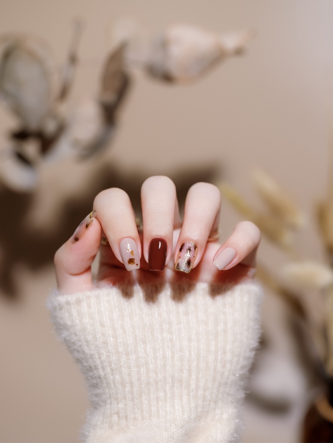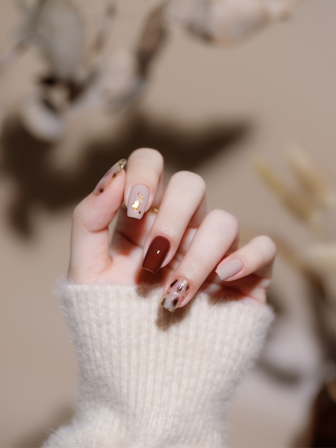 🍁秋冬豹纹气质显白心棕咖色美甲