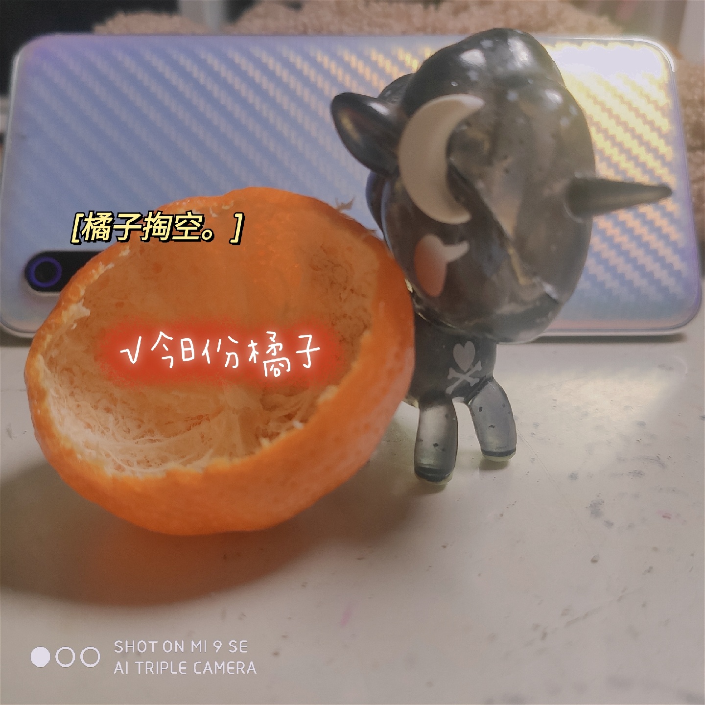 1⃣掏空橘子🍊,把橘子果肉吃了,留下橘皮
