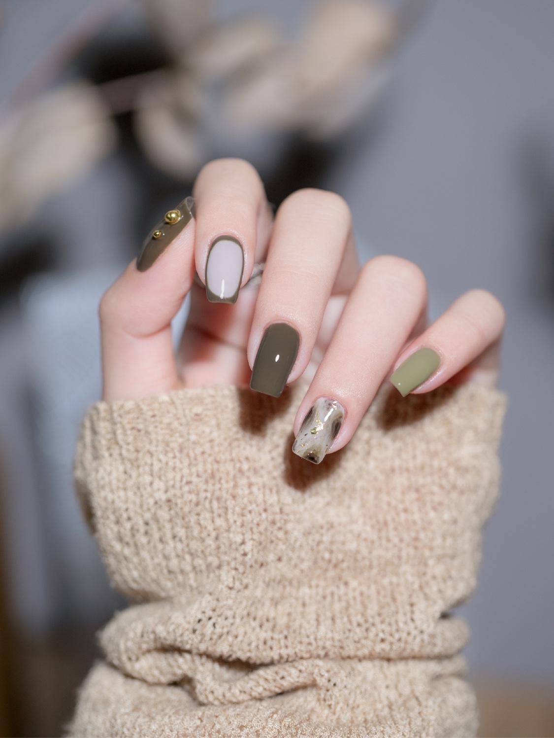 秋冬🍁显白莫兰迪墨绿晕染美甲美甲🍁莫兰迪墨绿晕染美甲冬季-美图社区-美图秀秀