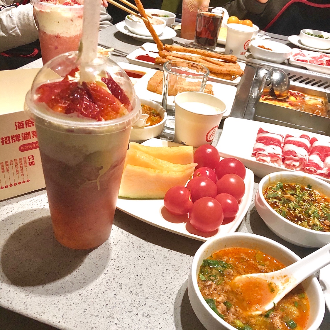 不得不说海底捞送的东西都能让我吃饱了😬太多杂七杂八的好吃的了……番茄汤,各种茶,水果,猪猪冰淇淋....各种粥.甜汤.小菜😎