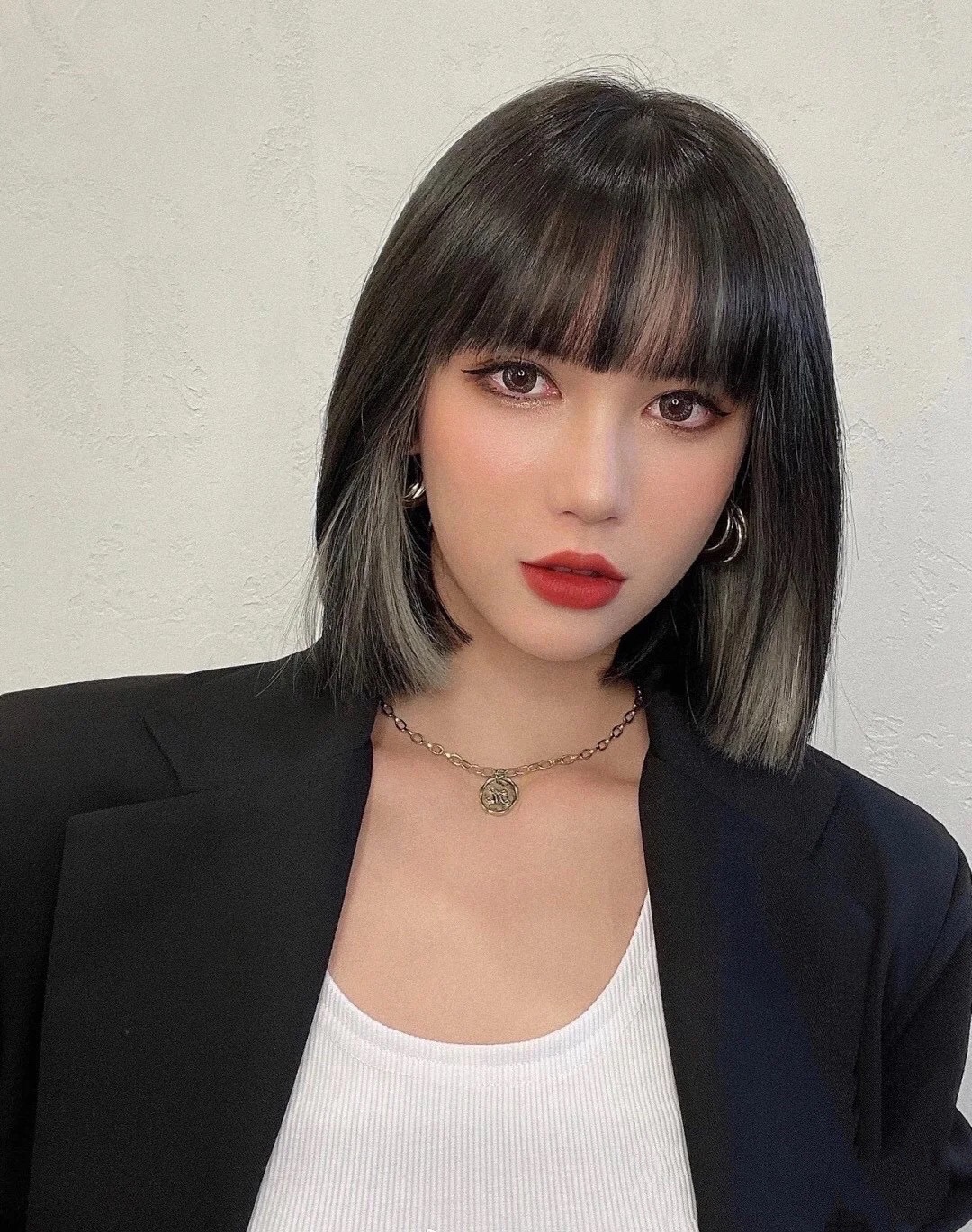 2021流行发色Lisa同款发型刘海染挂耳染