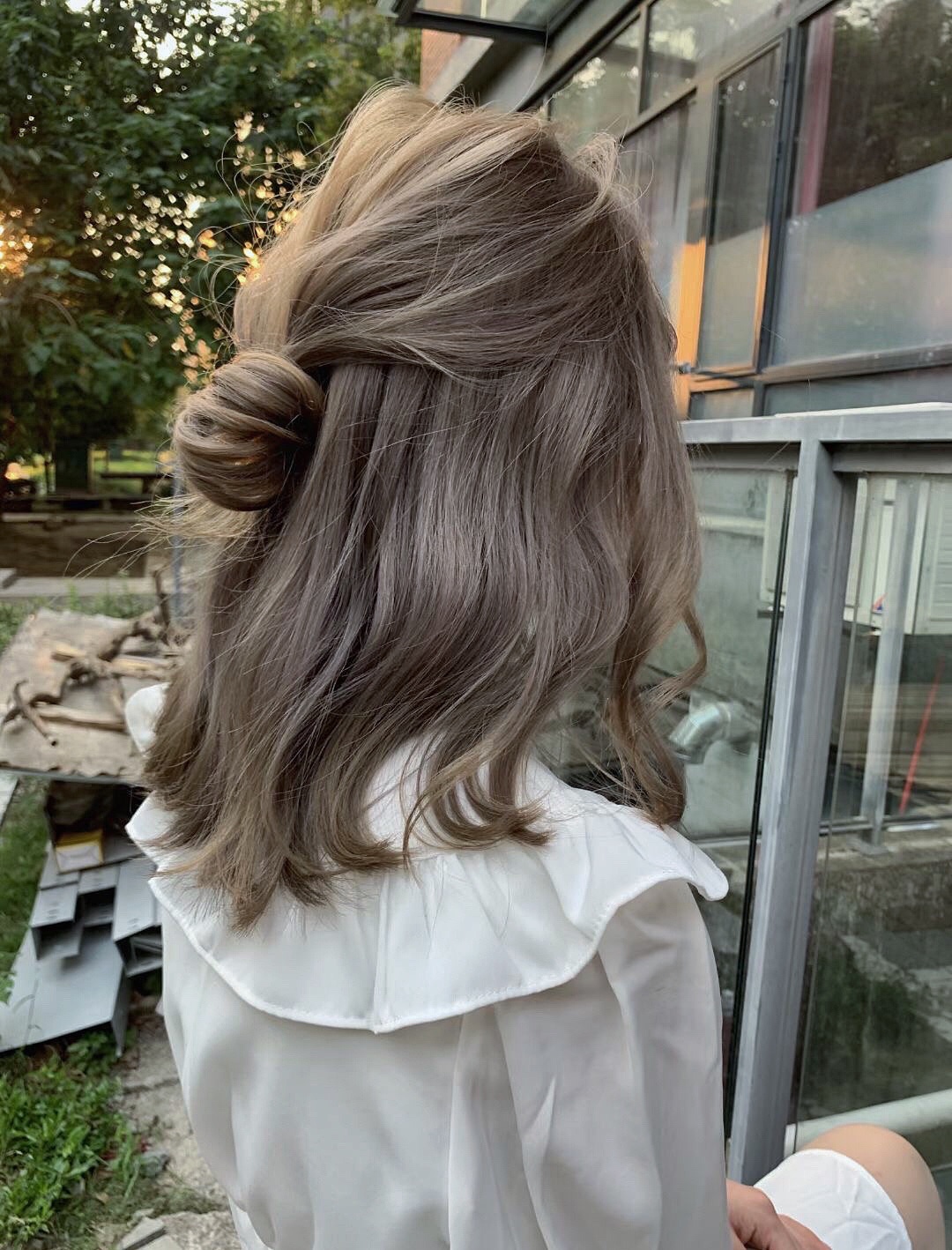 奶茶灰棕色很甜美温柔,秋冬季染这个颜色很有柔美感。