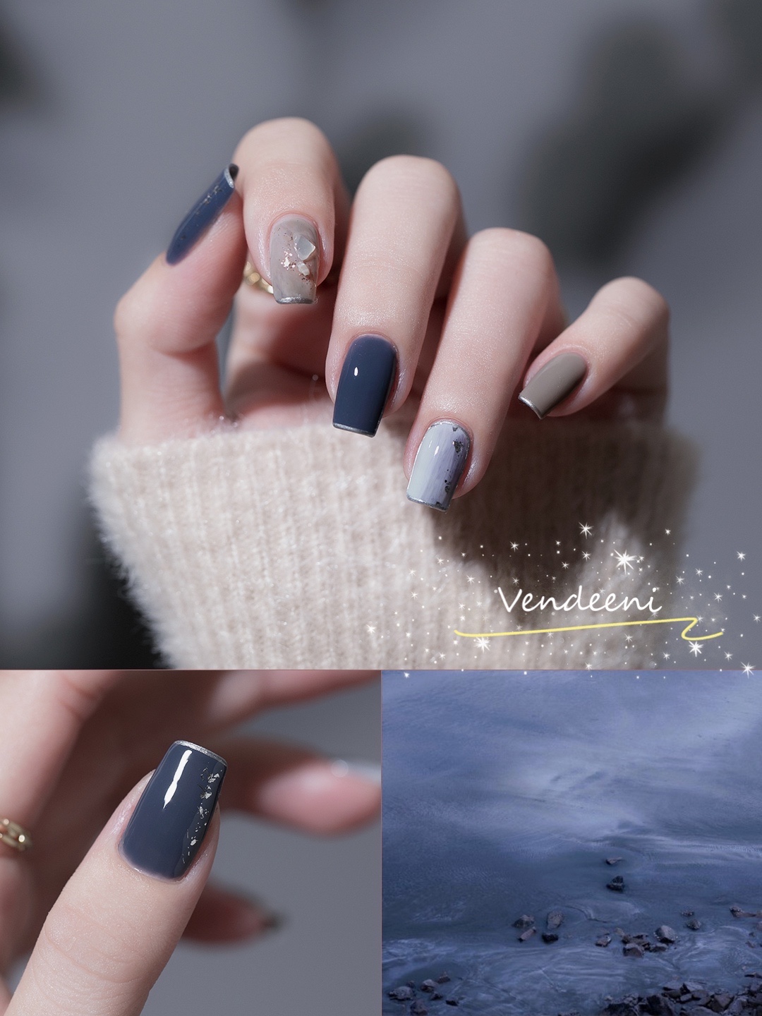 🍁冬日显白莫兰迪雾霾蓝色调美甲