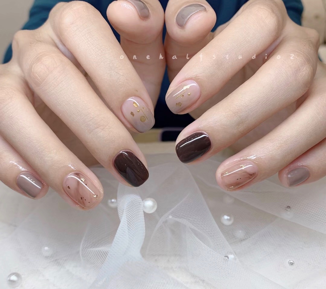 秋冬季节棕色咖啡色美甲💅