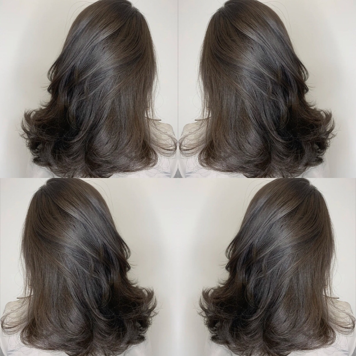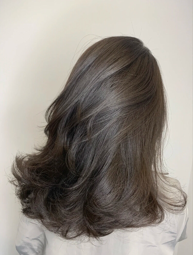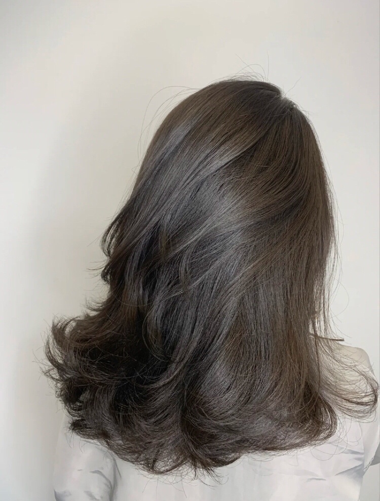 只是在黑茶色里面加入了青色调 让整个发色看起来冷一点 冷色调更加衬肤色 显白