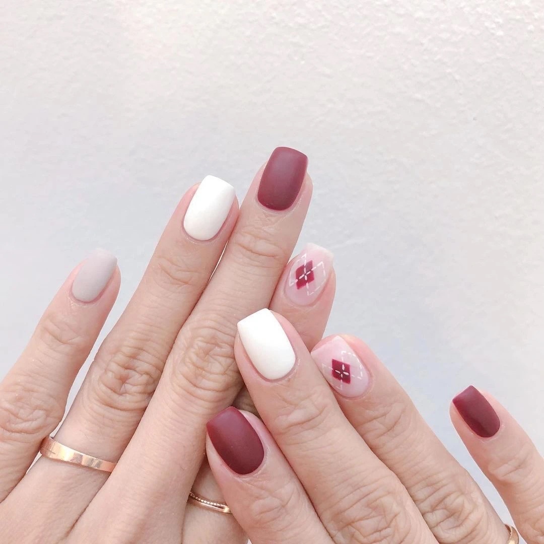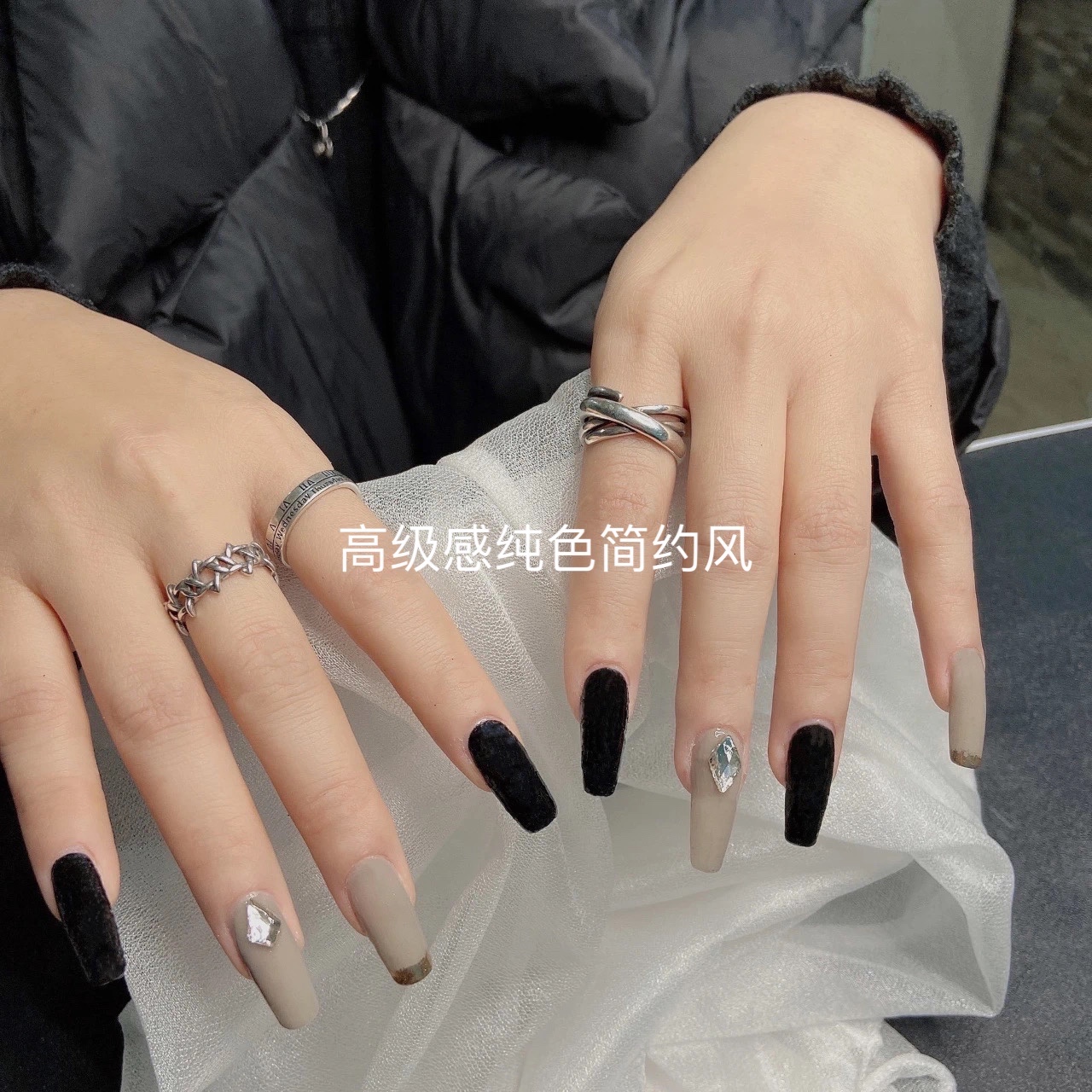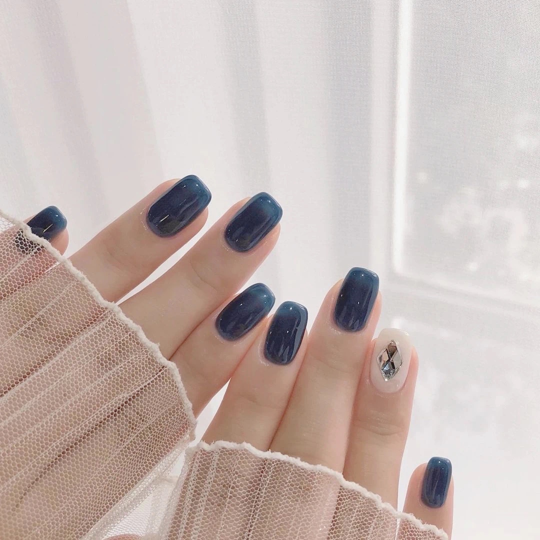 纯色美甲搭配简约款式很完美