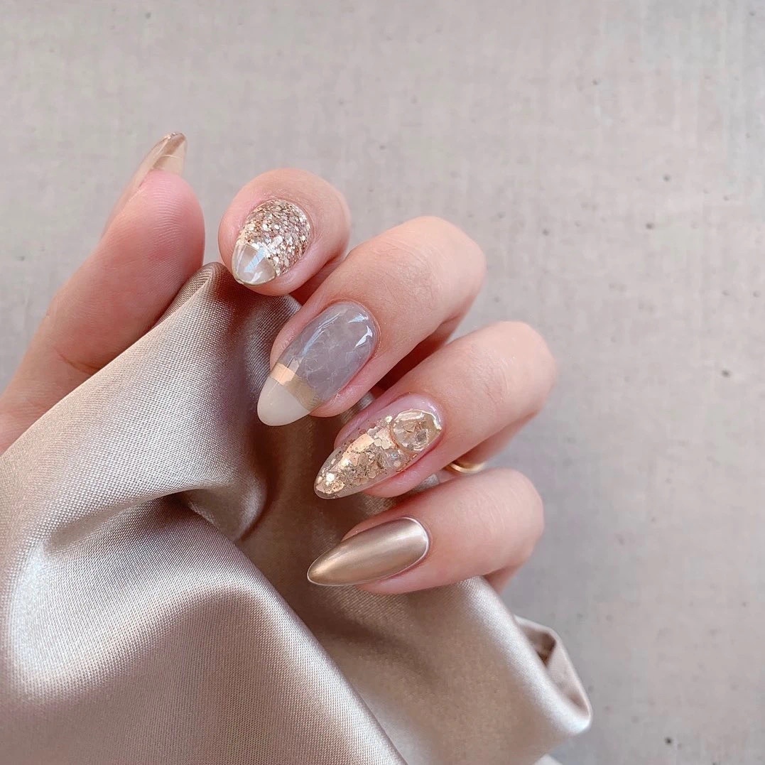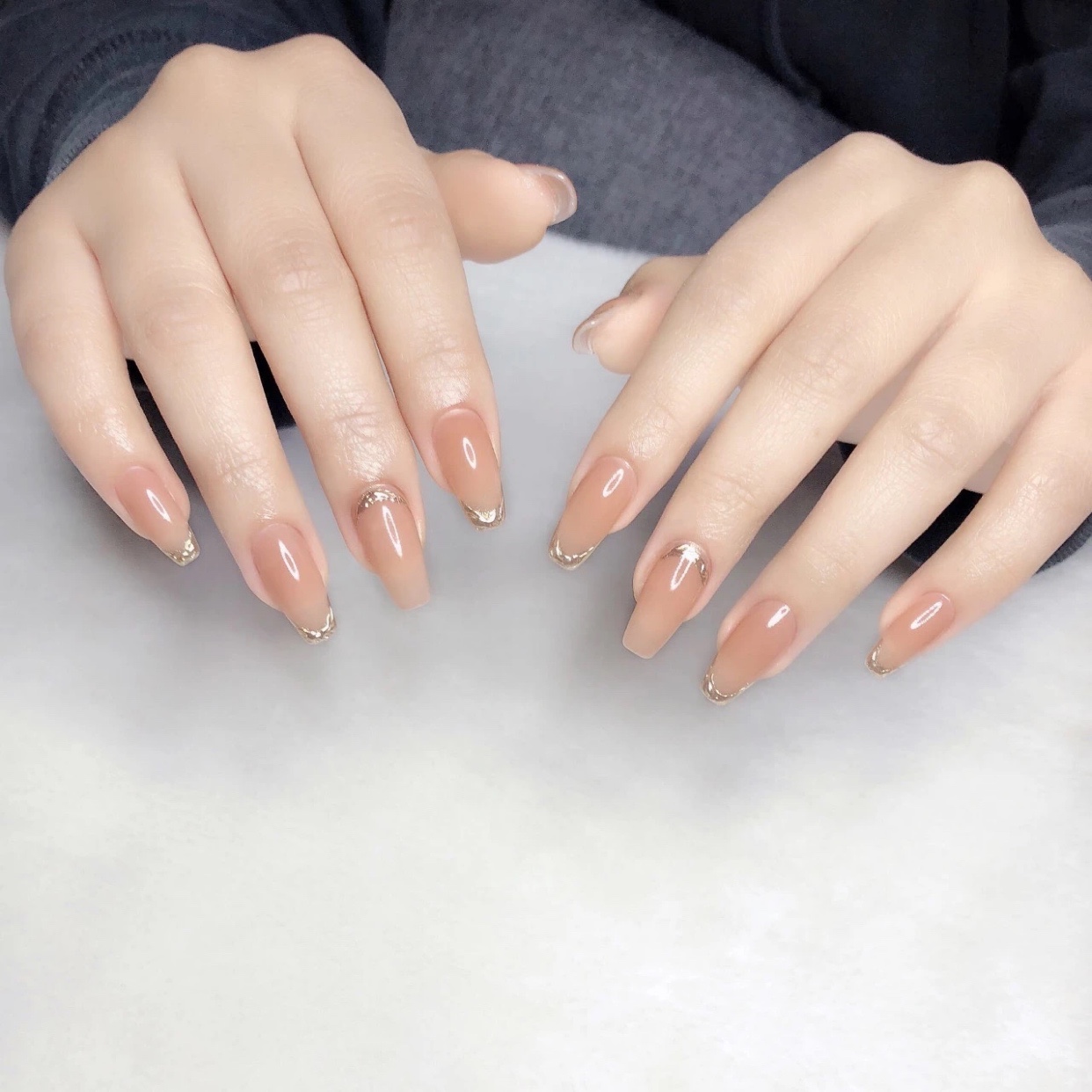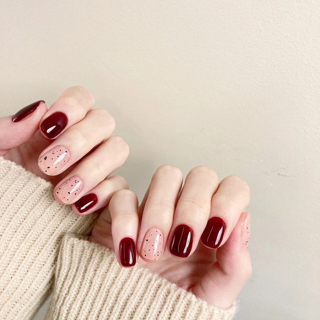 纯色美甲搭配简约款式很完美