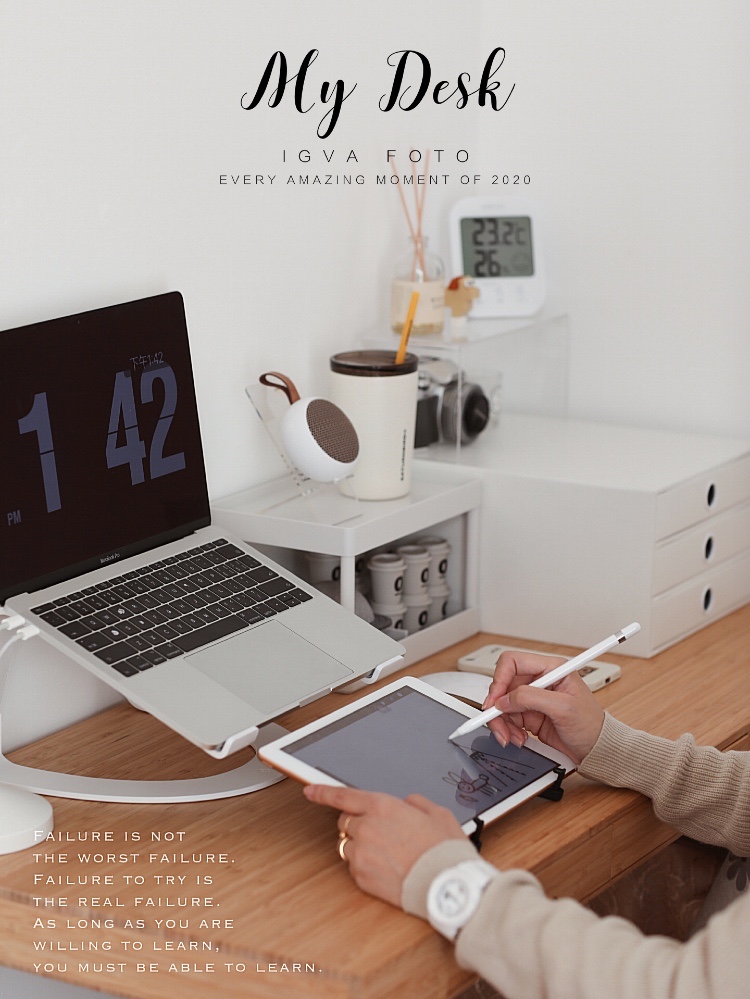 ▫️每当坐在书桌前,无论是工作还是学习,看着整洁的桌面心情都会很好。布置它也是按照统一的风格来,毕竟书桌有点小,不想放置得过于杂乱。