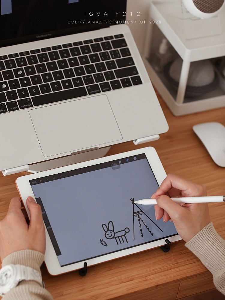 📂另外这个支架有三个可调节角度,iPad横着放、竖着放都行,像窄一些的kindle也可以放在上面,角度自己随意。如果是平时在平板上画画,后面的支架可以用矮的那个,视角舒服。