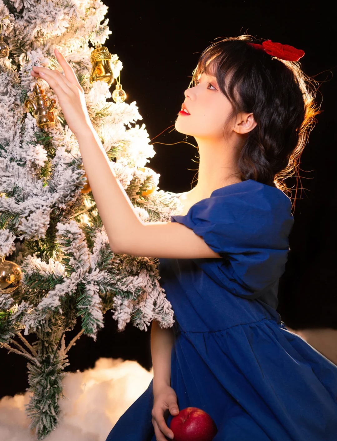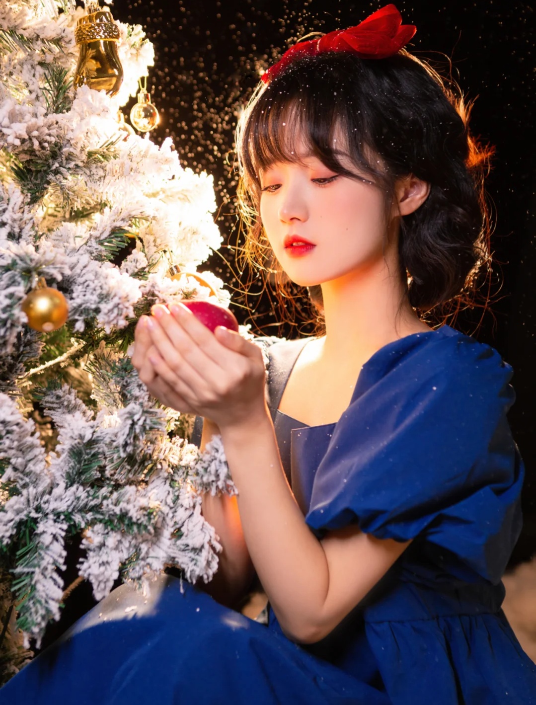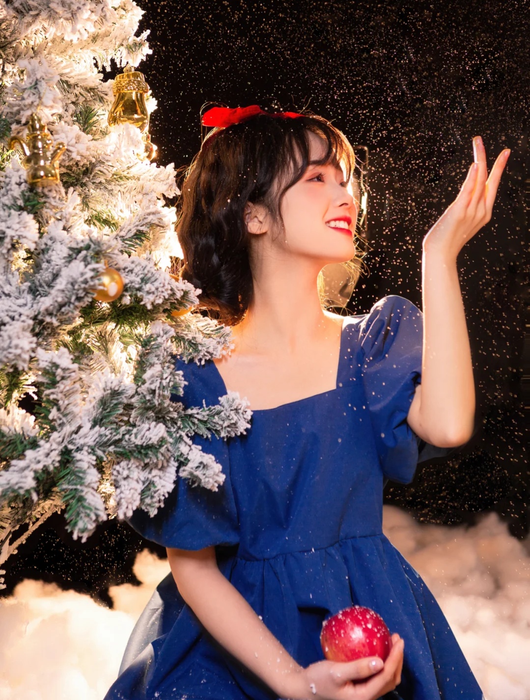 蓝色裙子和红色蝴蝶结真的很有白雪公主的感觉,这样又美又仙的圣诞写真你喜欢咩~