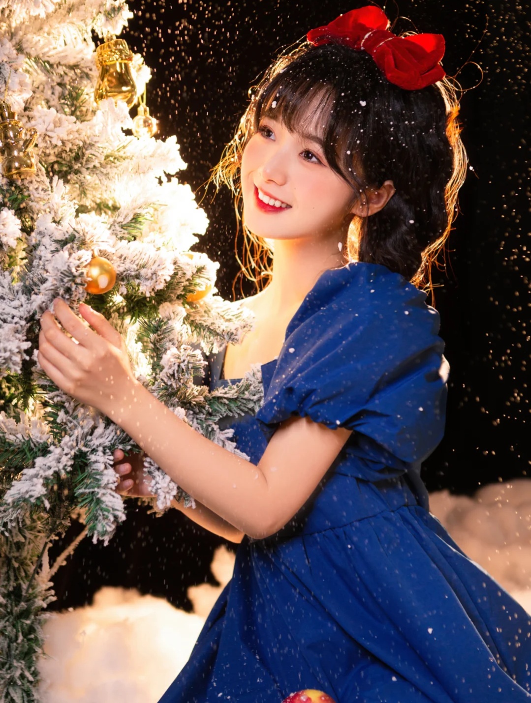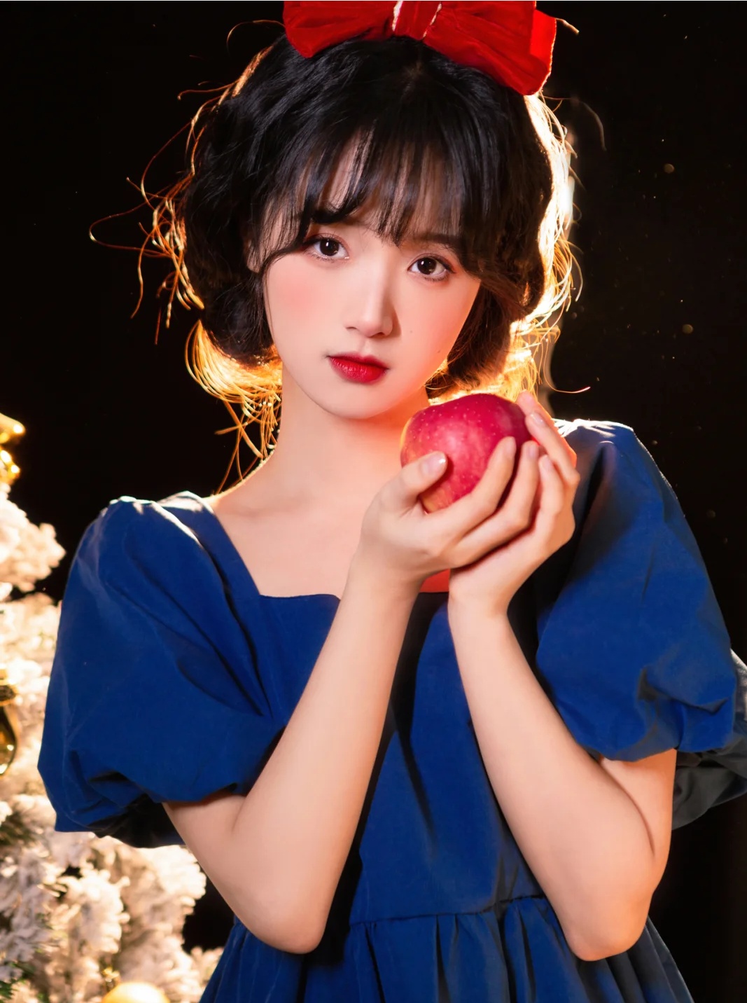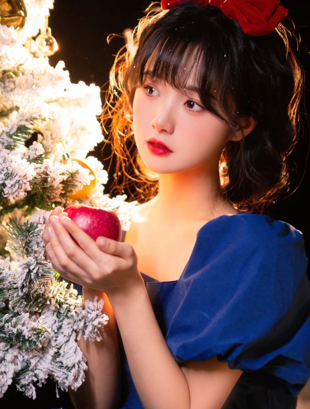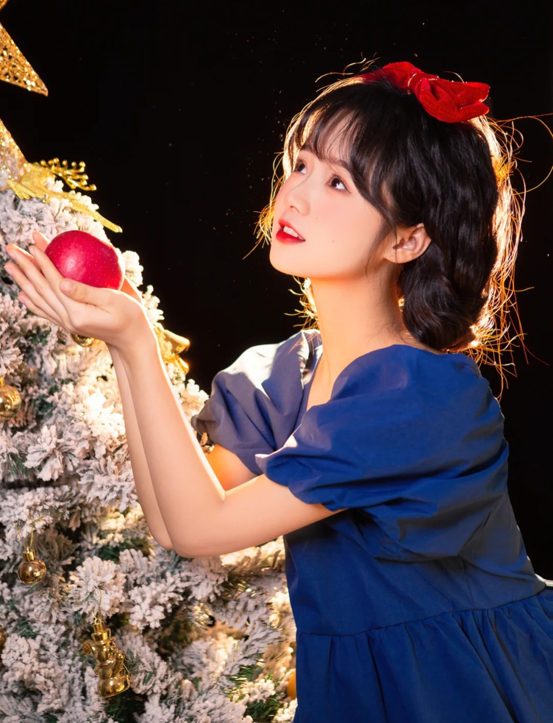 蓝色裙子和红色蝴蝶结真的很有白雪公主的感觉,这样又美又仙的圣诞写真你喜欢咩~