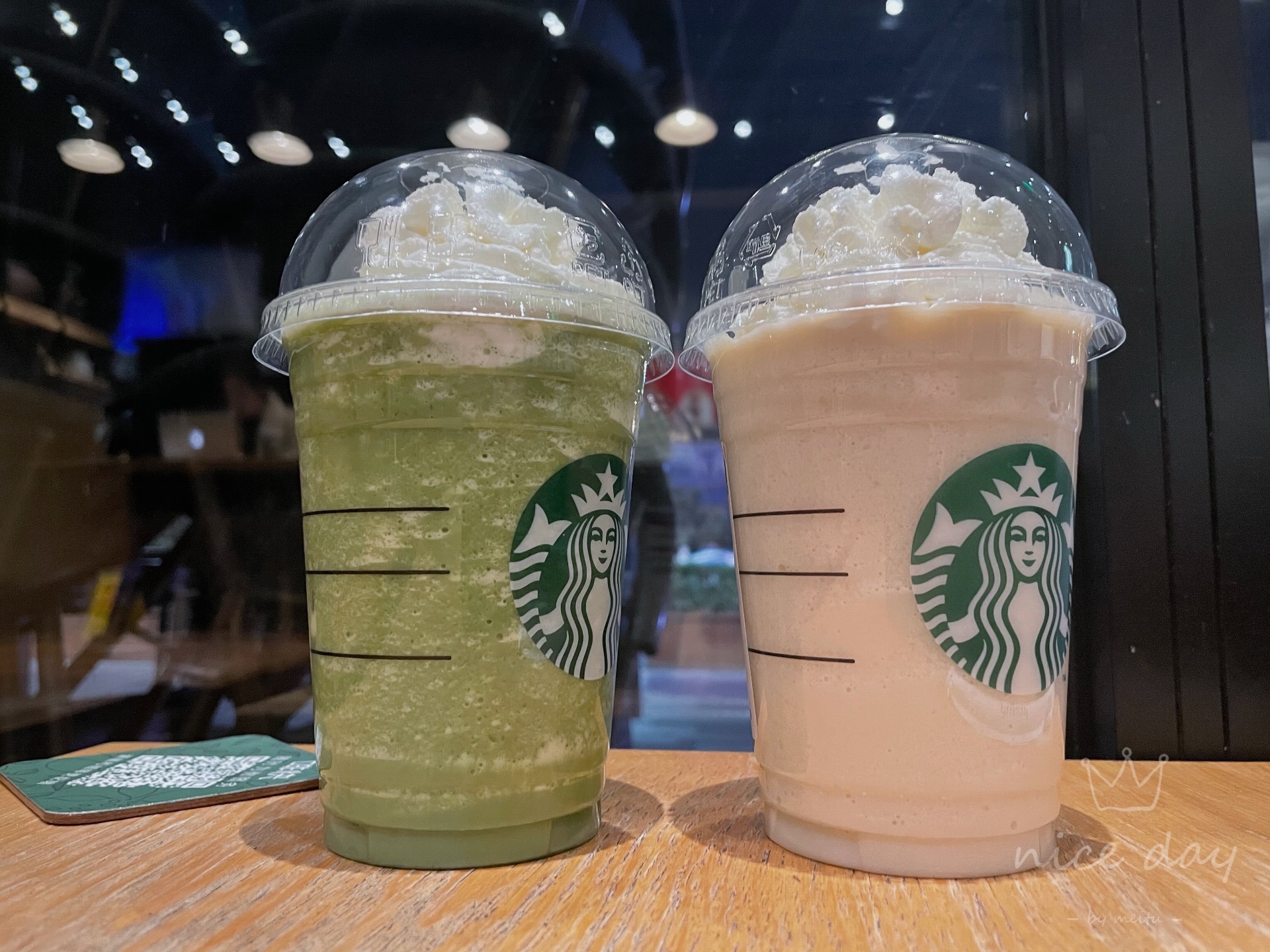 第一次和朋友们去喝了星巴克,点的是抹茶星冰乐,真的喝一次就爱上了,很浓的抹茶味,就是有一点甜了,下次一定要点少糖的,不过如果爱喝甜的朋友们可以试喝一下,不会让你失望哈。