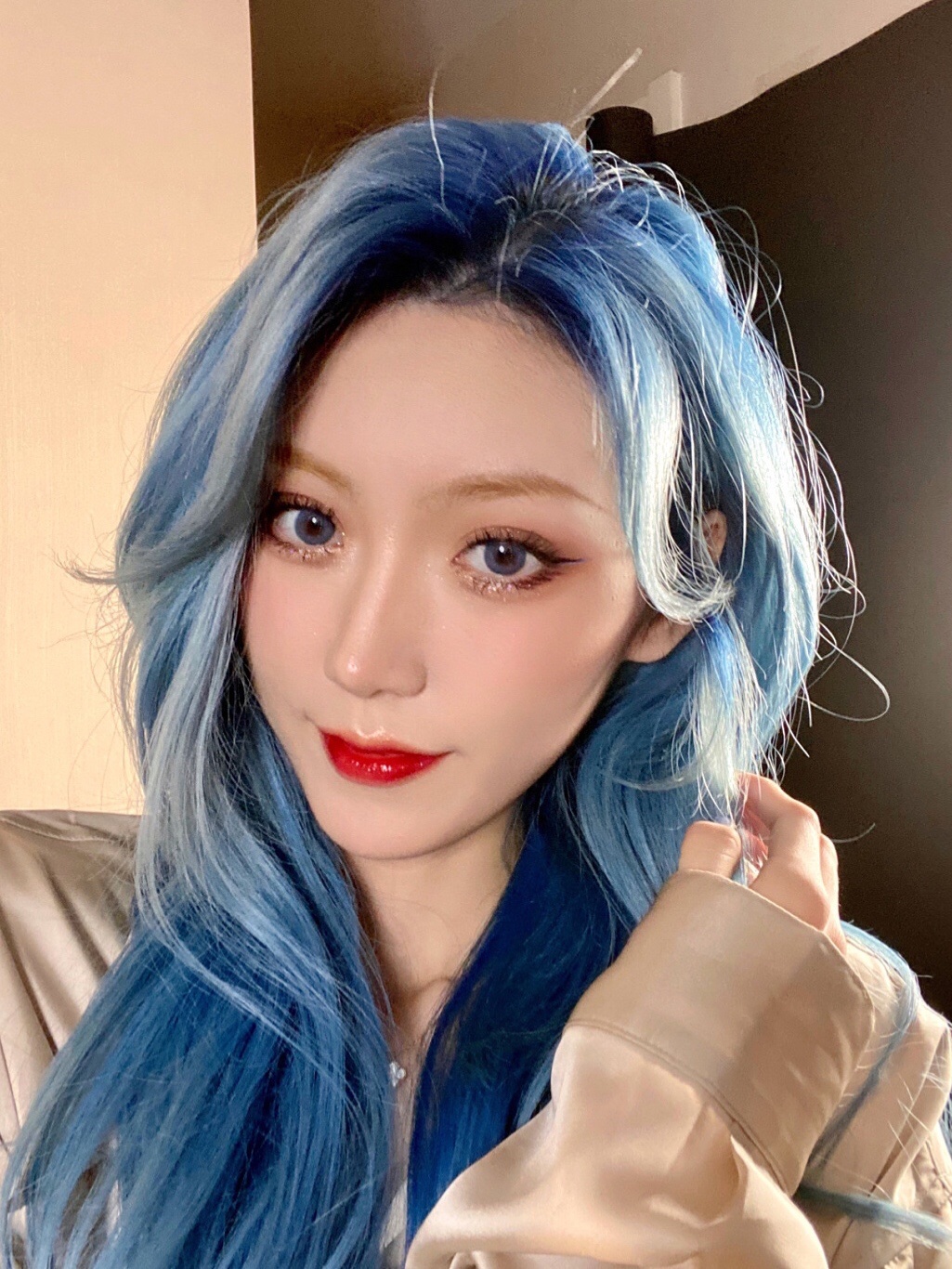 这发色也太仙了吧喻言同款孔雀蓝绿发色神仙发色呐!这个发色真的-美图社区-美图秀秀