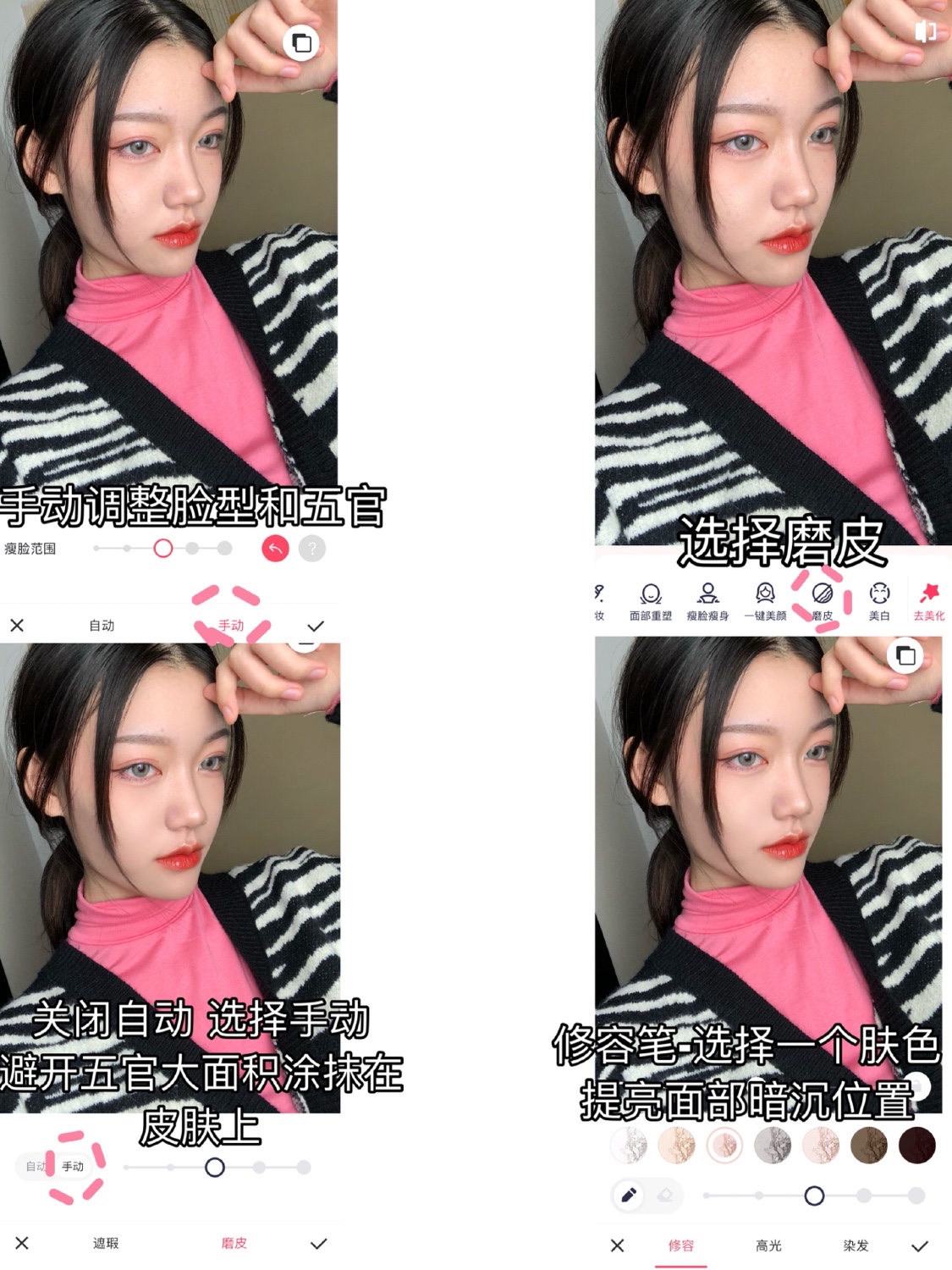 4️⃣磨 皮-关闭自动-用手动来大面积涂抹面部 记得避开五官