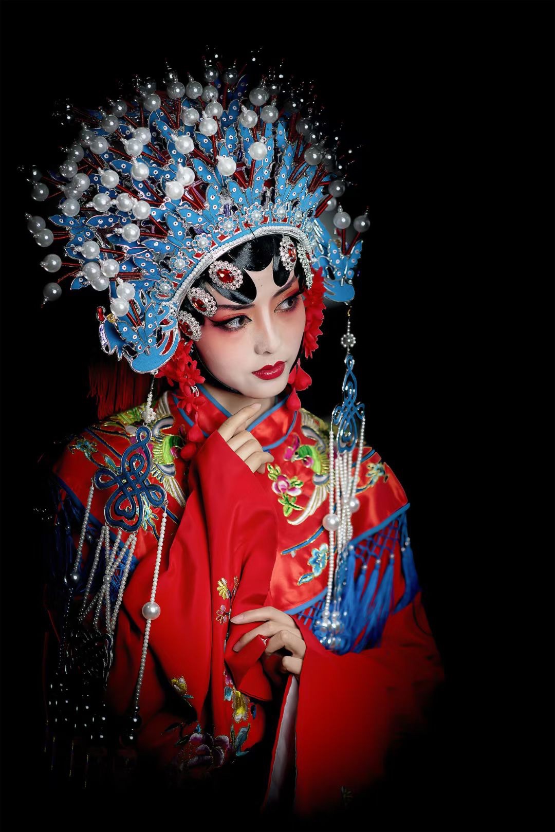 戏曲人像小品,喜欢这种复古的照片,特别是复古风🉐云肩,流苏,刺绣。