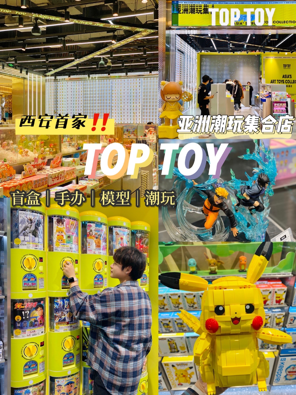 之前看到广州深圳的朋友去打卡亚洲最大最全潮玩盲盒手办集合店TOP TOY,实名羡慕!西安首店一开立马就去了! 果然惊喜~品类超多超全,集合了各种潮玩,盲盒、手办、高达模型、金属拼装、积木,逛完决定跟只有盲盒的泡泡玛特say byebye!