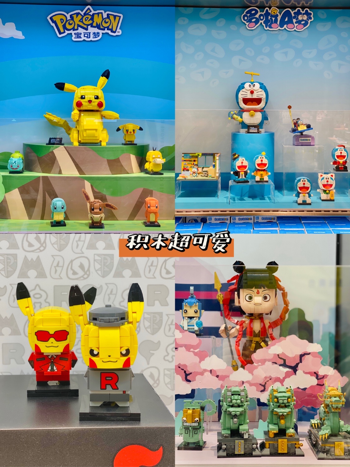 最爱的皮卡丘做成积木也太可爱了,哆啦A梦和哪吒也超可爱,哪吒和脚下的狮子🦁️和龙🐲简直是国漫骄傲!