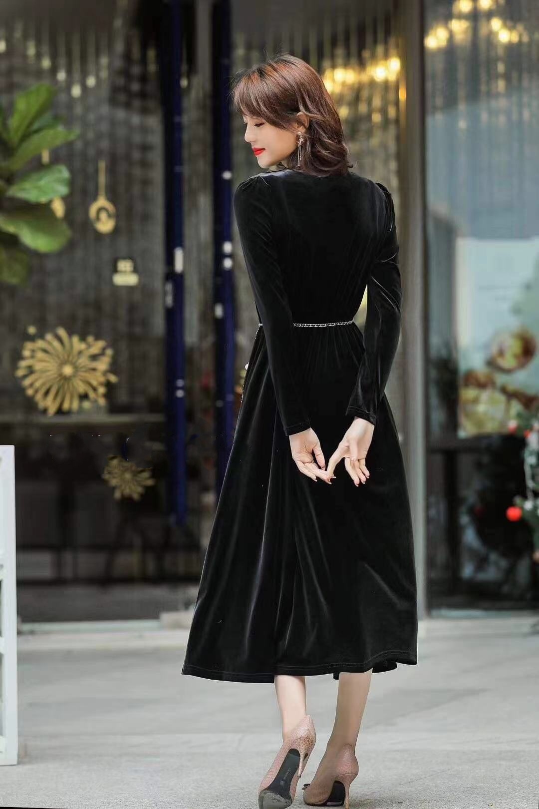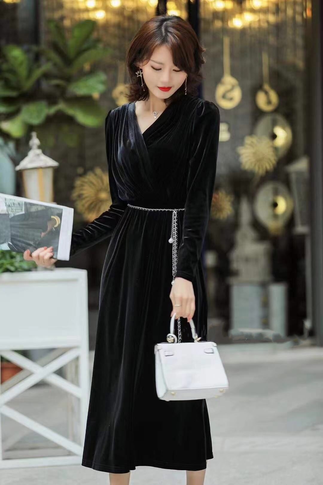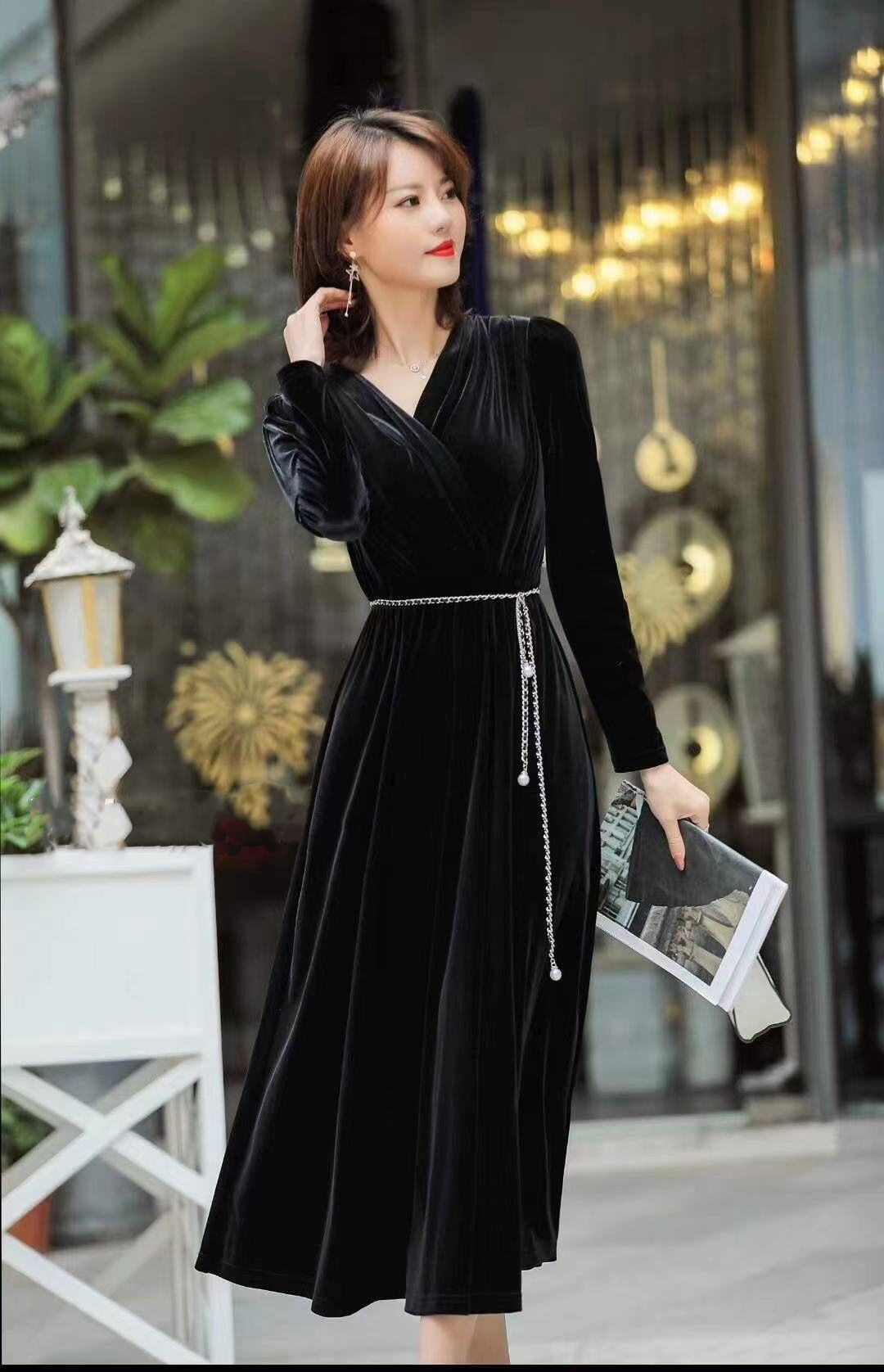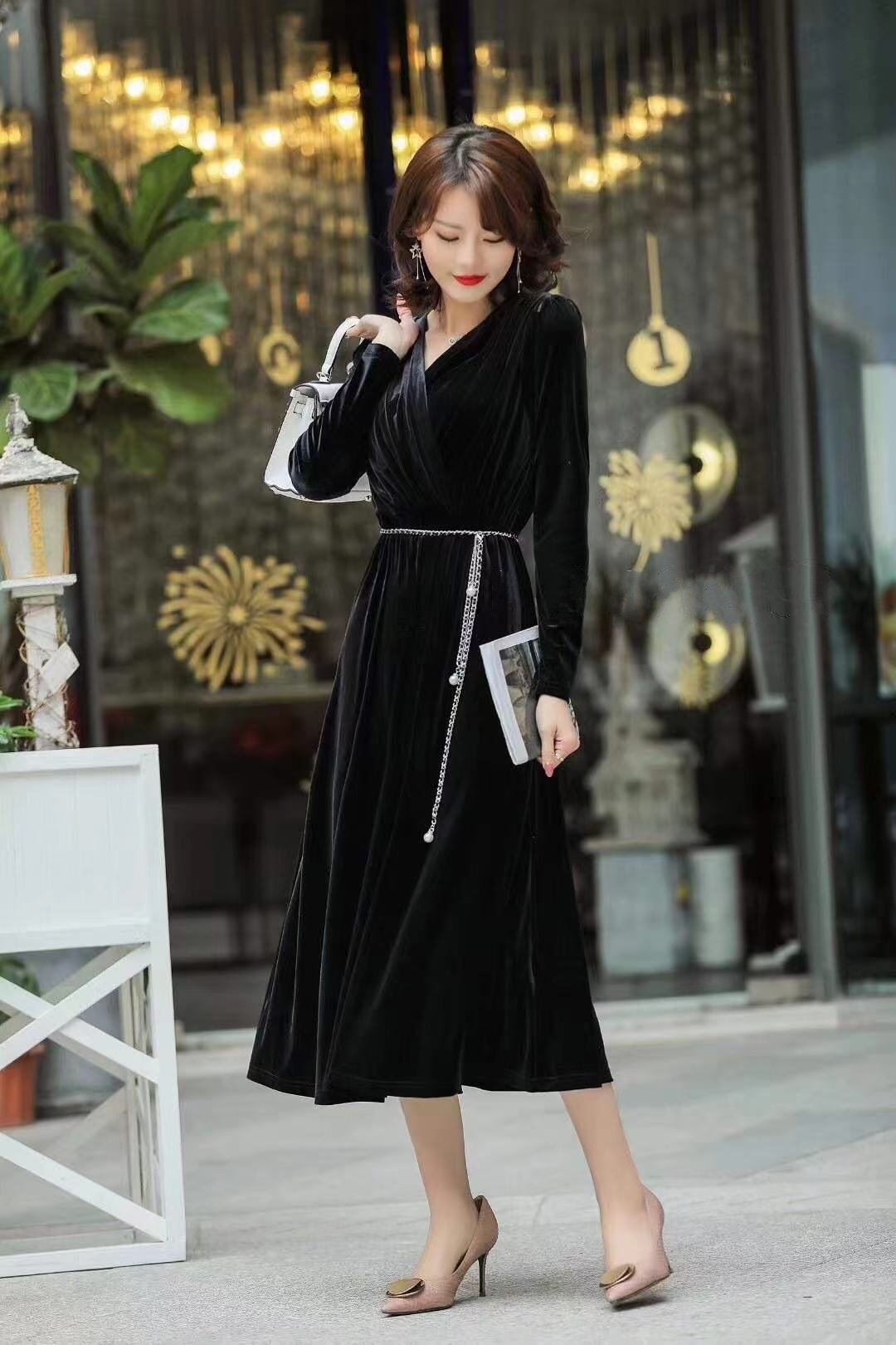 时尚连衣裙 V领型 带着神秘的小性感 高腰版型 上身修身显瘦超显身材配腰带