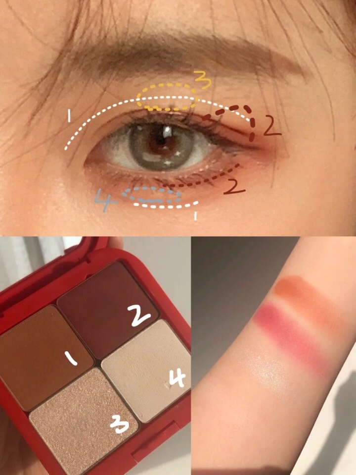 眼影:MUFE新年礼盒里的明星挚爱眼影🌟 里面这块红色是灵魂!搭配腮红氛围感满满 叠在眼尾很提气场 画法放在图7啦