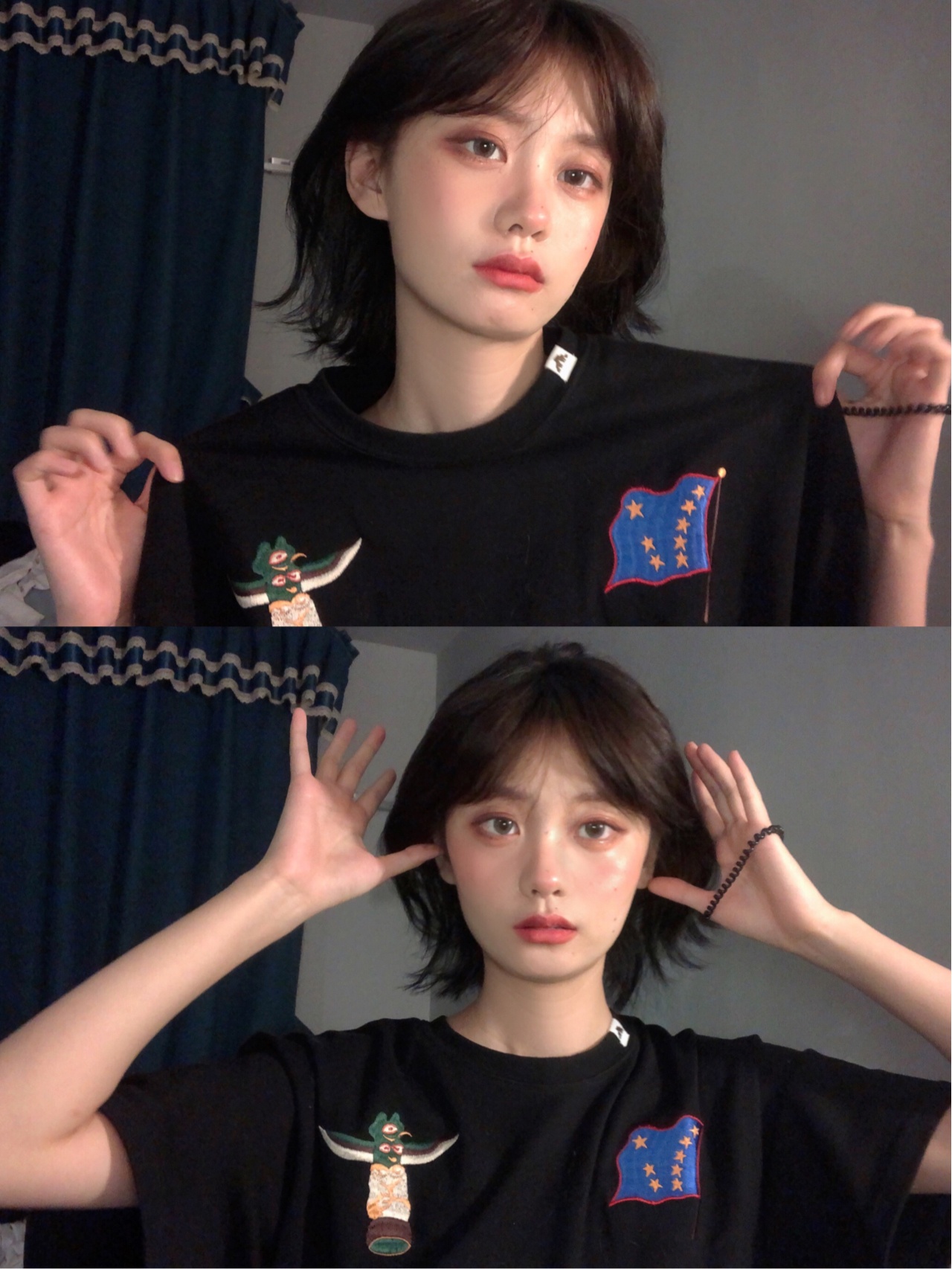 在家拍照的话,发型自然点拍出来效果会更好。不用特意做头发的造型,我就是在家随意的扎完头发放下来,然后让头发看起来蓬松凌乱一点,🌟最好能营造出,刚起床头发睡的乱糟糟的感觉(大家能懂的哈)手上再套一个发绳,做个扎头发的动作,🤷♀️不知道摆什么pose?连拍抓拍就ok,最后拼在一起就很好看了。