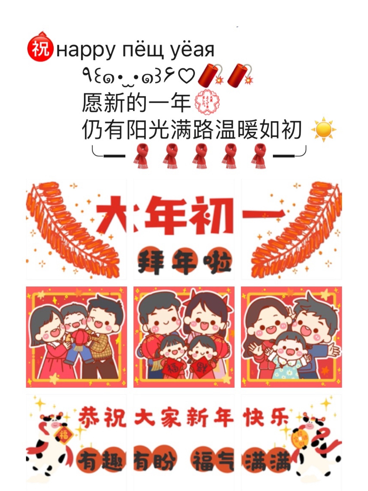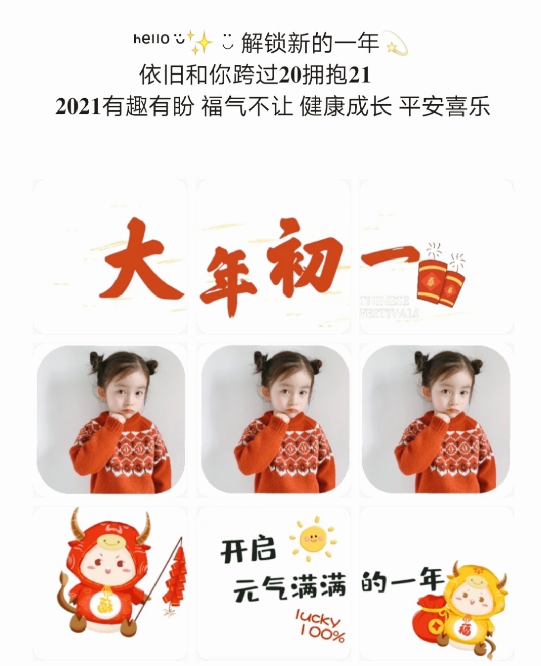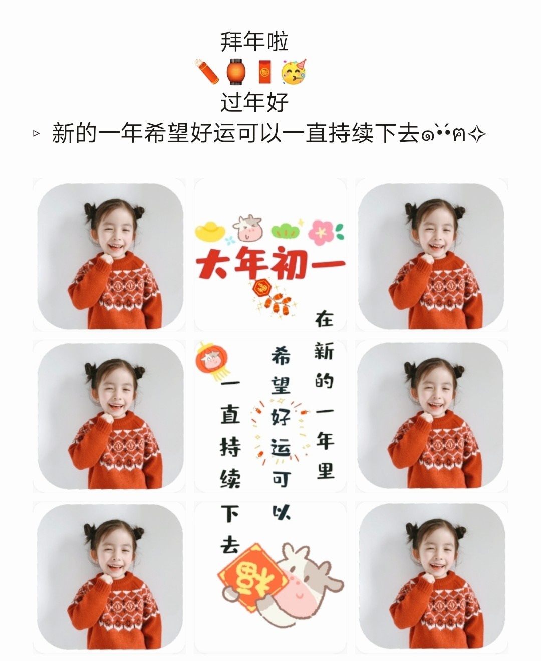 大年初一朋友圈九宫格素材配图/新年祝福语/全家福