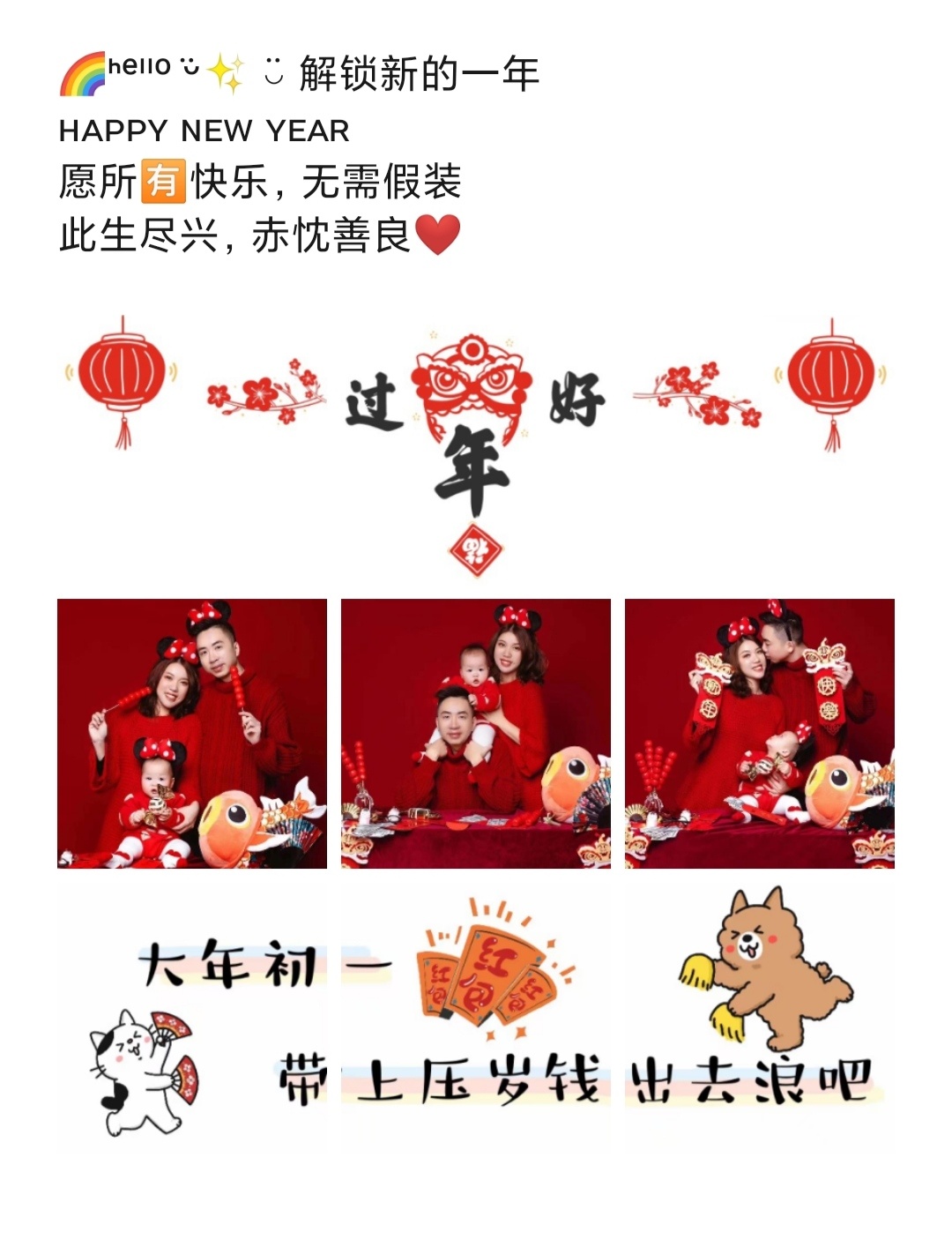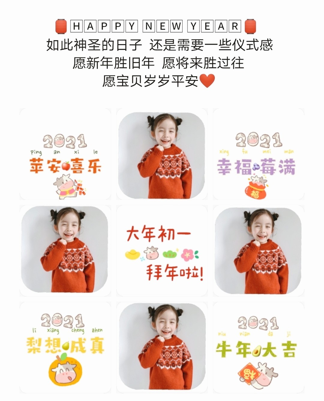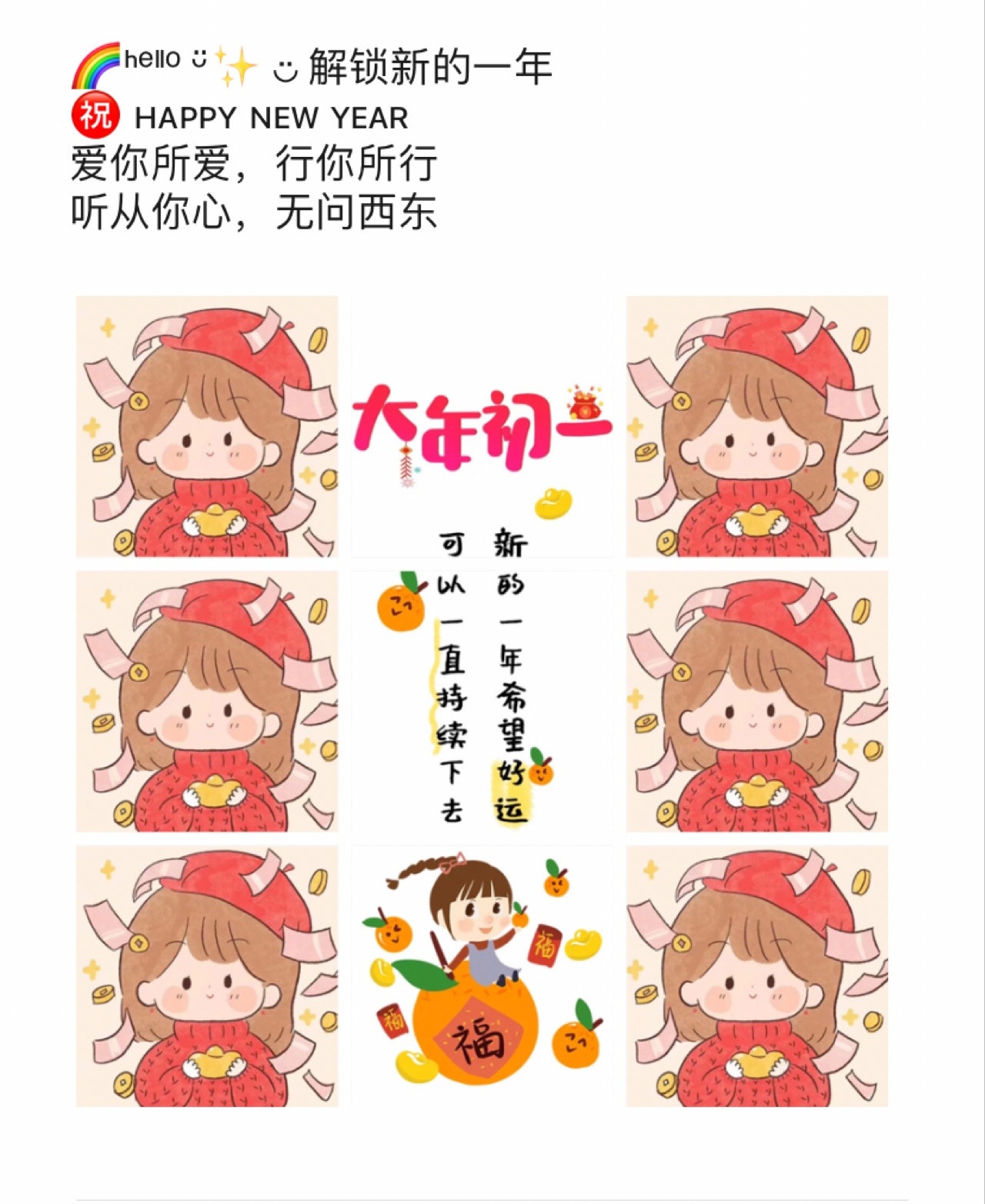 大年初一朋友圈九宫格素材配图/新年祝福语/全家福