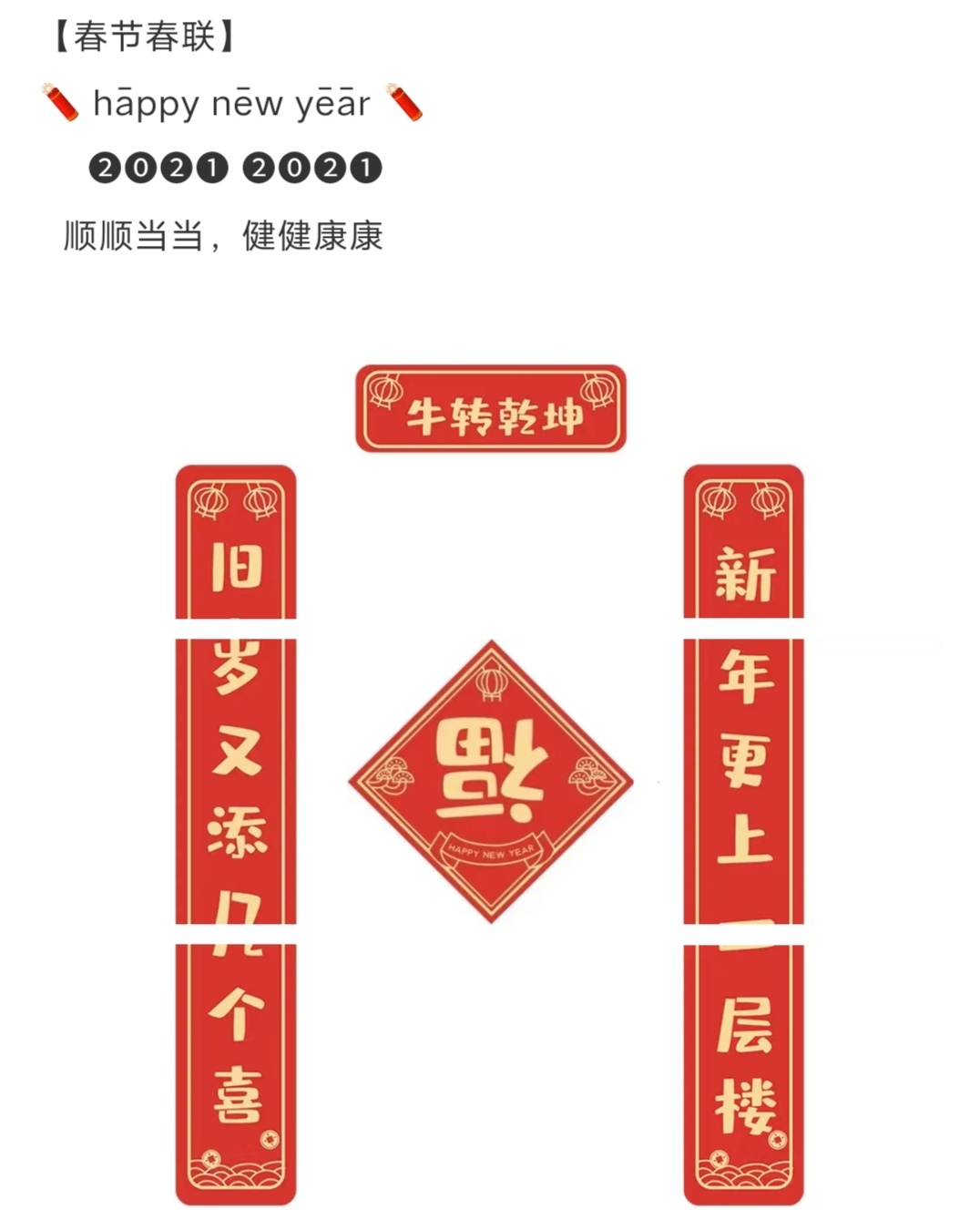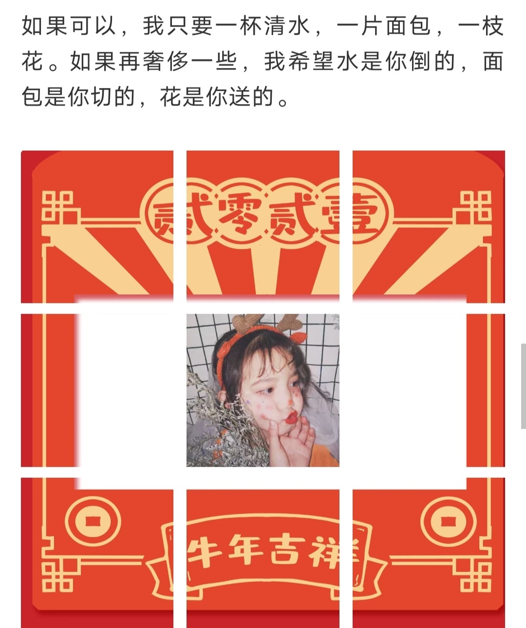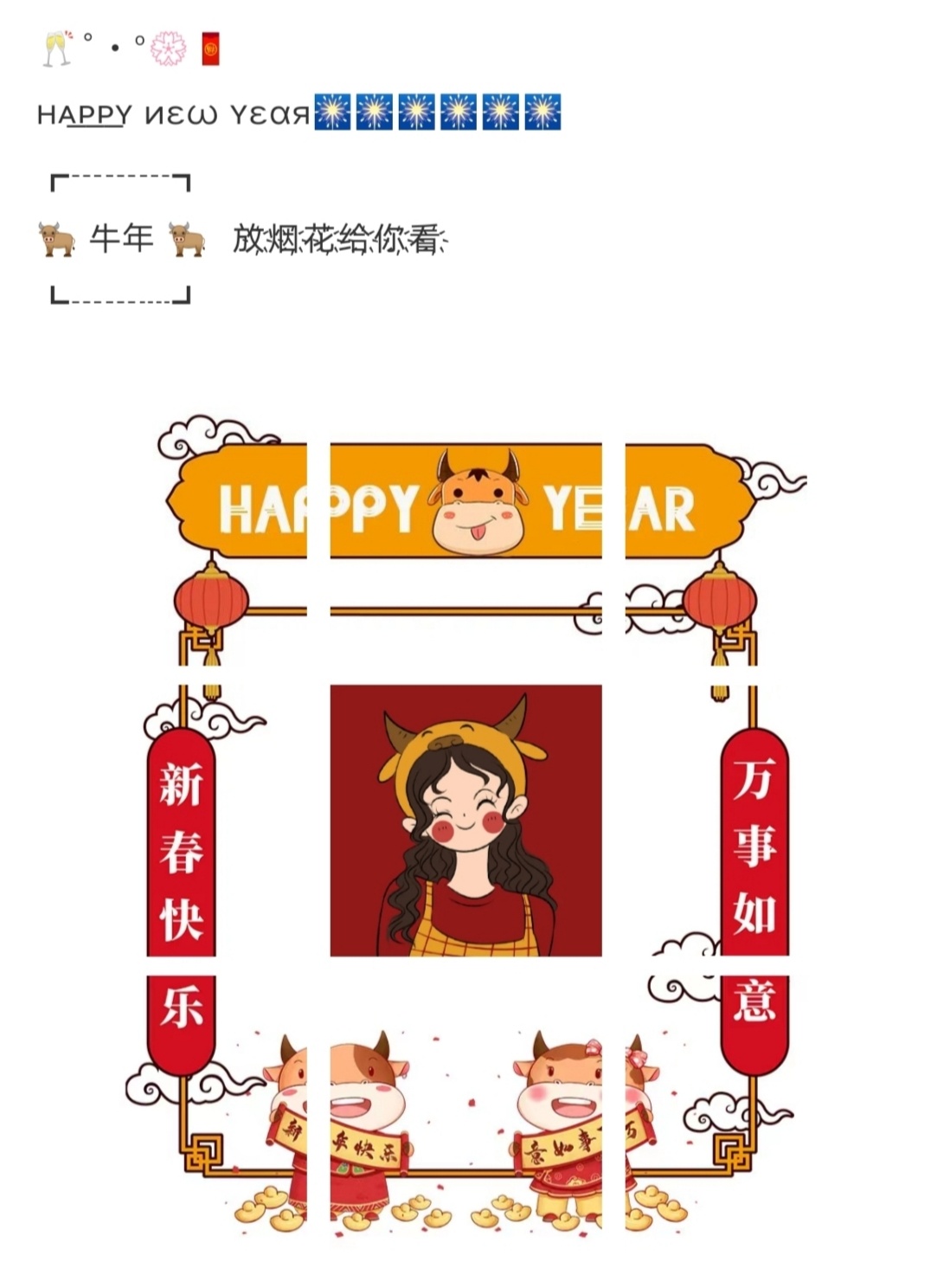新年朋友圈九宫格拼图素材 | 牛年到 祝大家新年快乐|适合新年春节拜年|朋友圈发圈高级文案|大年三十除夕夜九宫格朋友圈文案|年夜饭文案|新年快乐|牛年大吉|新春快乐|除夕快乐|庆团圆年夜饭九宫格文案|除夕夜文案|春节晒娃|晒全家福👪