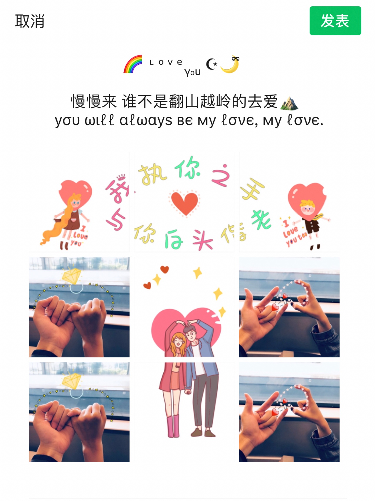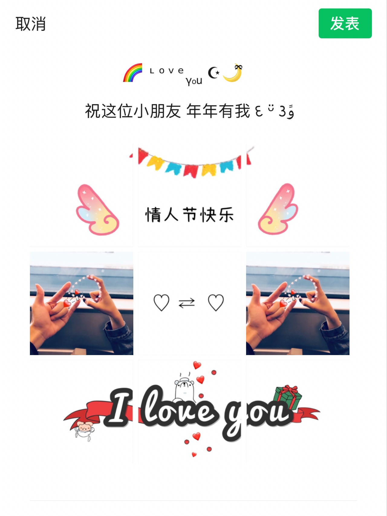 2.14情人节正月初三|情人节秀恩爱朋友圈九宫格素材