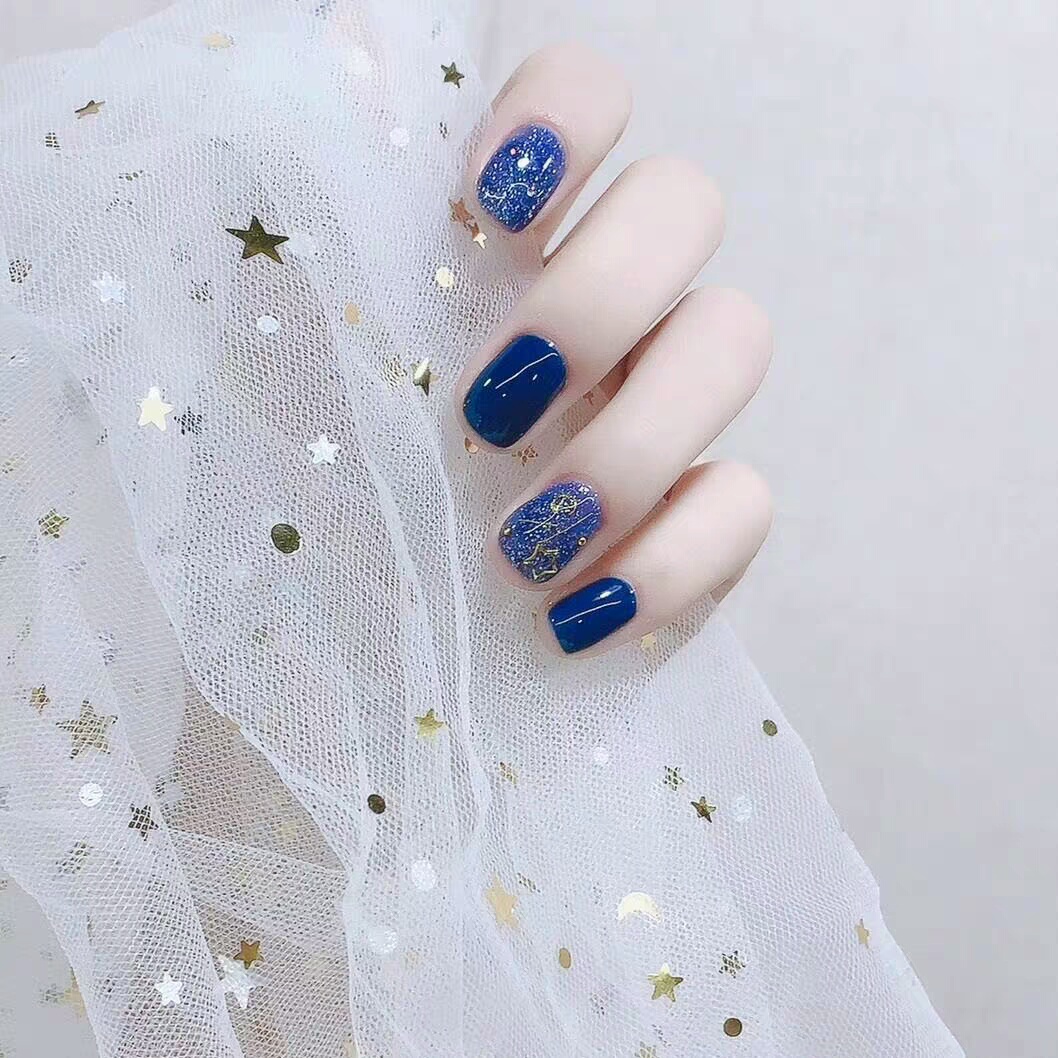 暗夜黑星空蓝钻美甲