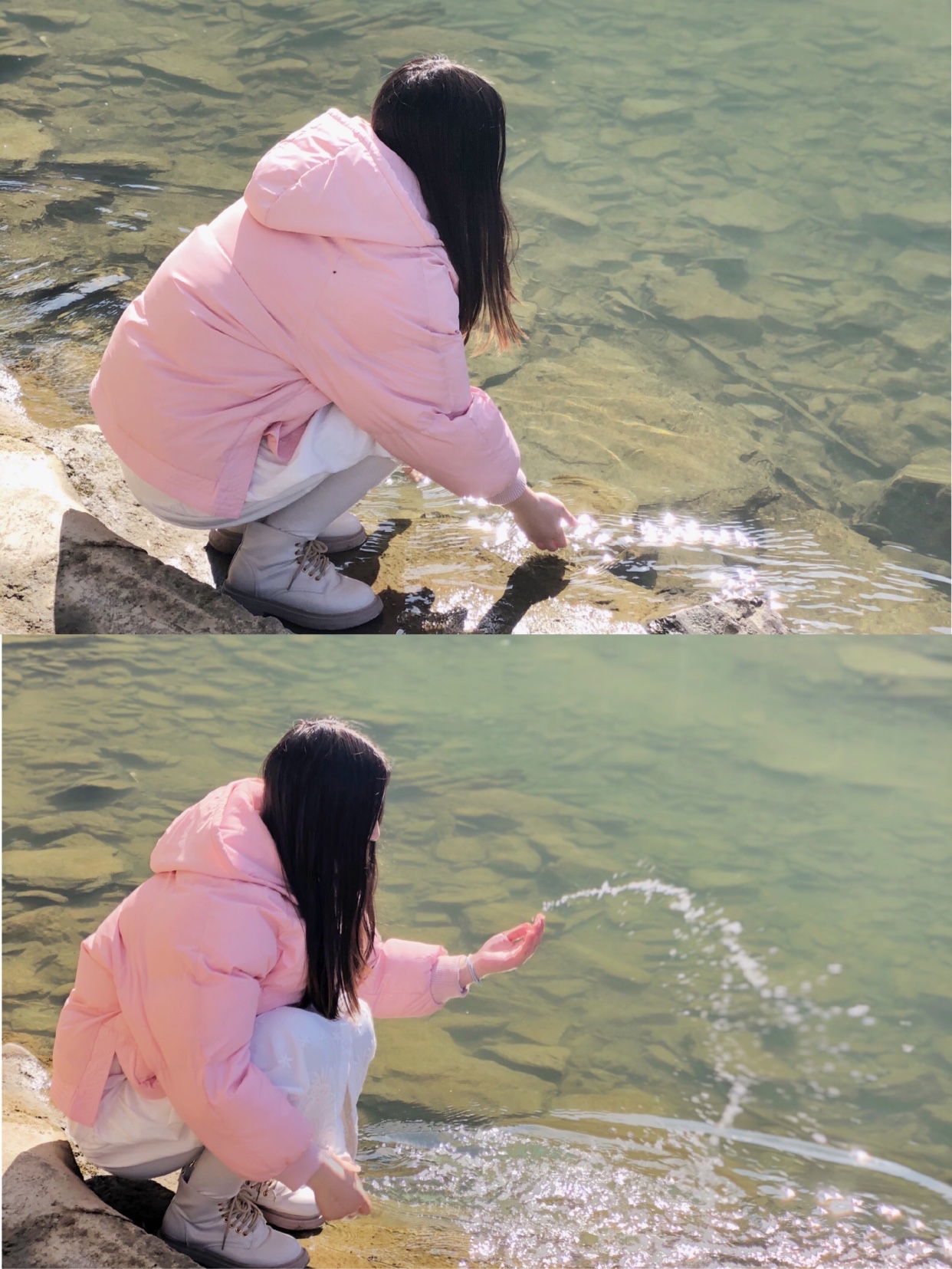 小河边阳光下的水珠真的太美了,我特别喜欢图片里面的水那两张,原图拍出来就是紫色的,自己调了一下色,调完真的超美,对于特别喜欢紫色的我来说简直是最爱了。