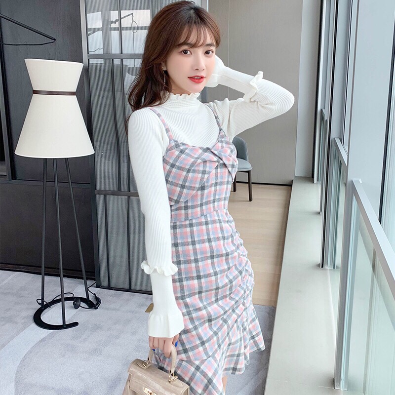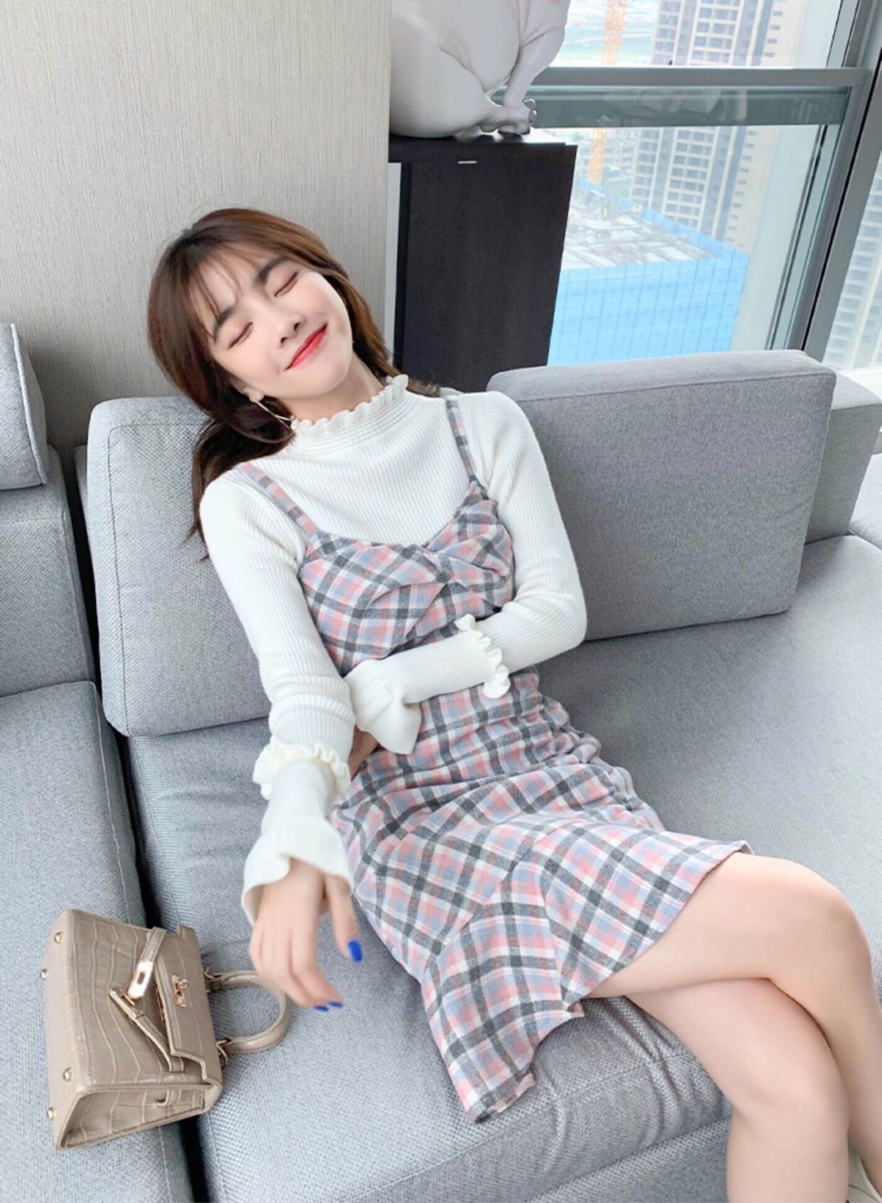 今日新穿搭:小个子针织长袖上衣,搭配吊带裙两件套,清新显瘦又-美图社区-美图秀秀