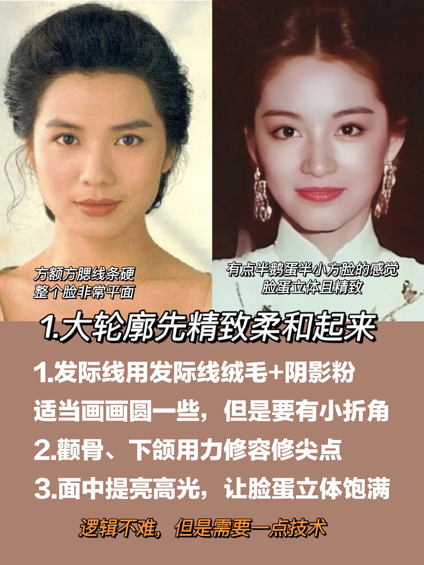 1️⃣大轮廓方:方脸方腮方额方下巴