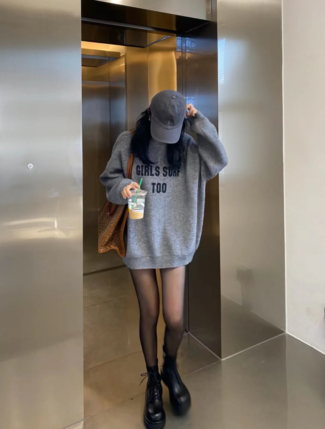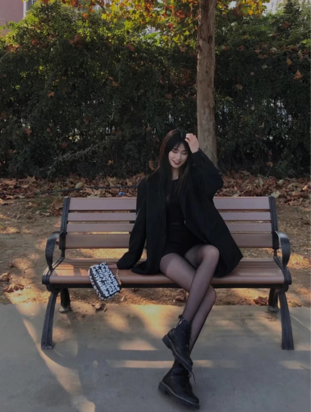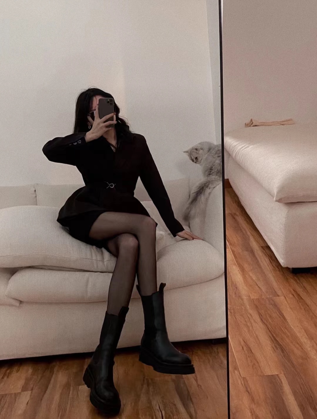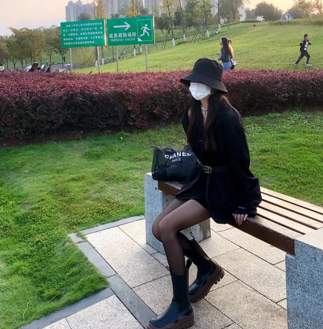 只会要穿 黑丝不就sq,春正天正好,搭西配装卫衣,烟筒靴aj ,又又酷飒