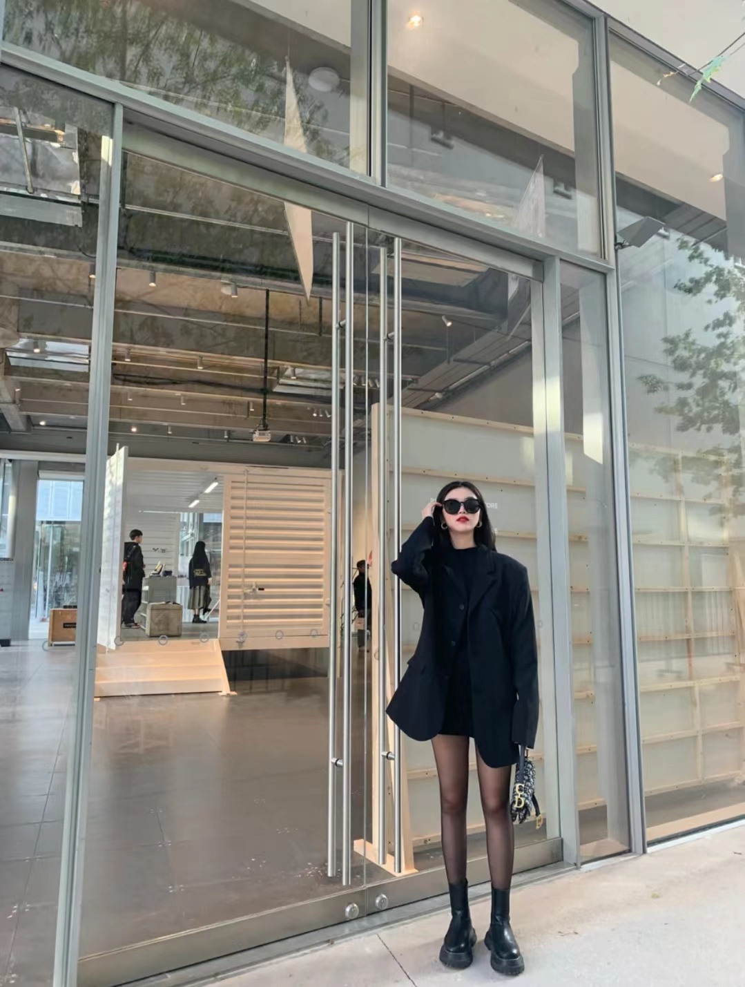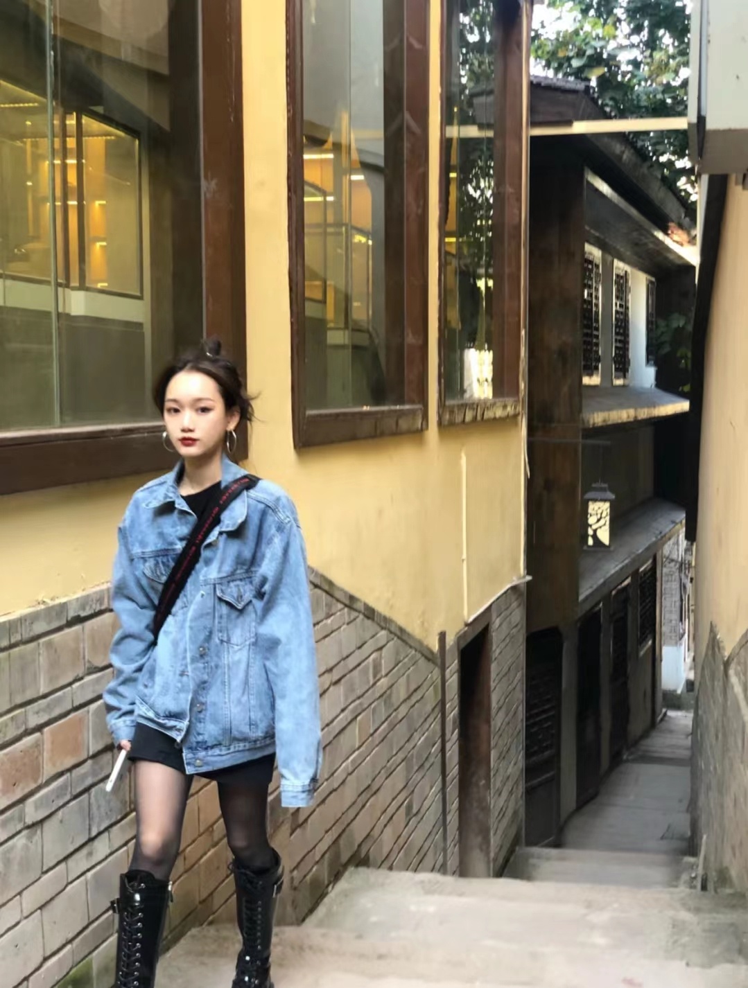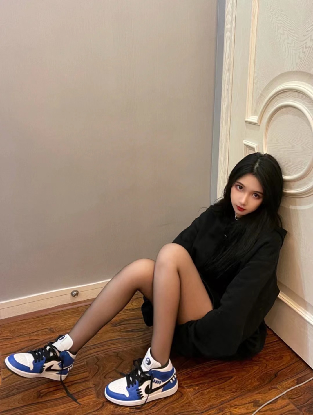 只会要穿 黑丝不就sq,春正天正好,搭西配装卫衣,烟筒靴aj ,又又酷飒