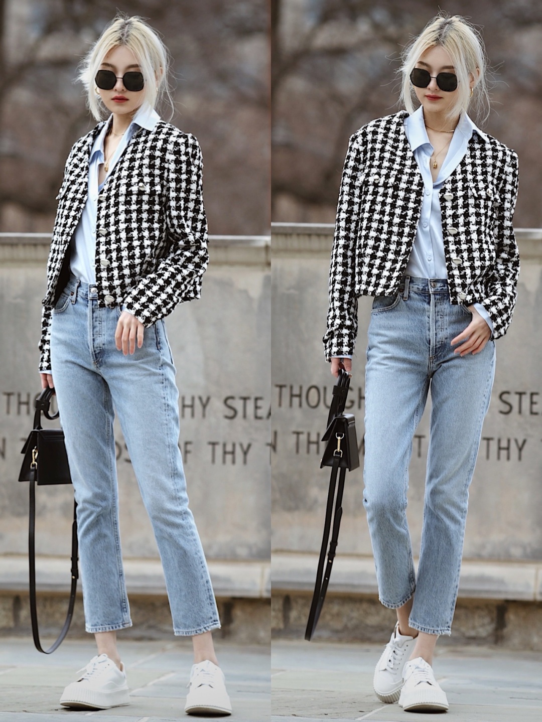 4k,8k,精细细节,超高分辨率,最佳质量,高清,复杂细节,大文件大小,令人惊叹,单反摄影,极端光影,景深,焦散,宽光,自然阴影,女孩,(85mm,f/ 1.4,iso 200,1/600:0.75),(复杂细节:1.1),复杂背景,,(复杂细节:1.12),,短裤,户外, 棕色头发, 珠宝, 衬衫, 棕色眼睛, 牛仔布, 项链, 长发, 粉红色衬衫, 牛仔短裤, 路, 单独聚焦, 街道, 建筑, 看着观众, 树, 人行横道, 微笑, 有领衬衫、短裤、白天、天空、嘴唇、站立、蓝色短裤、格子、牛仔射击、戒指、手腕袖口、耳环、蝴蝶结