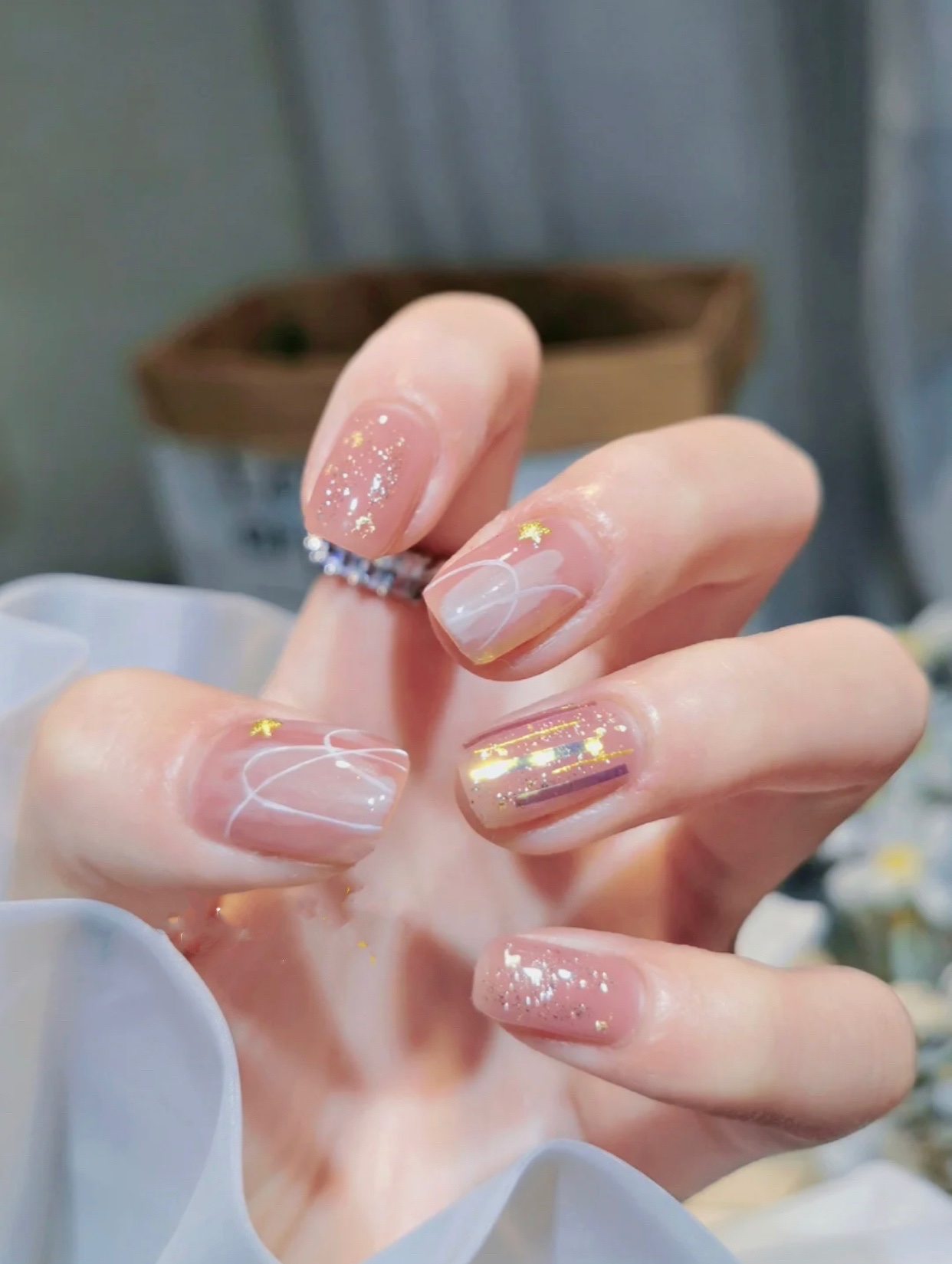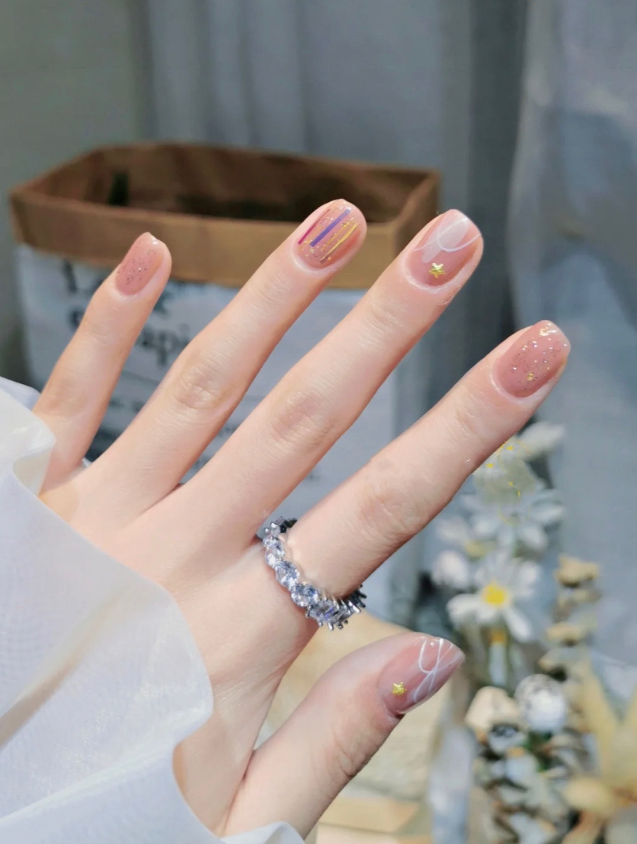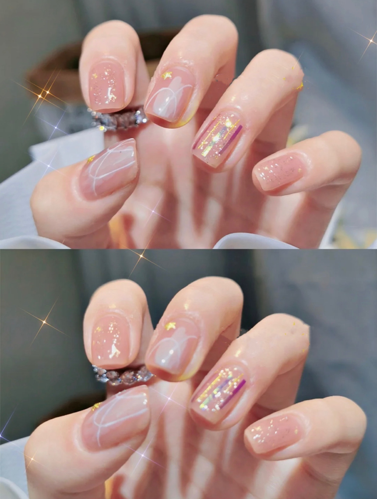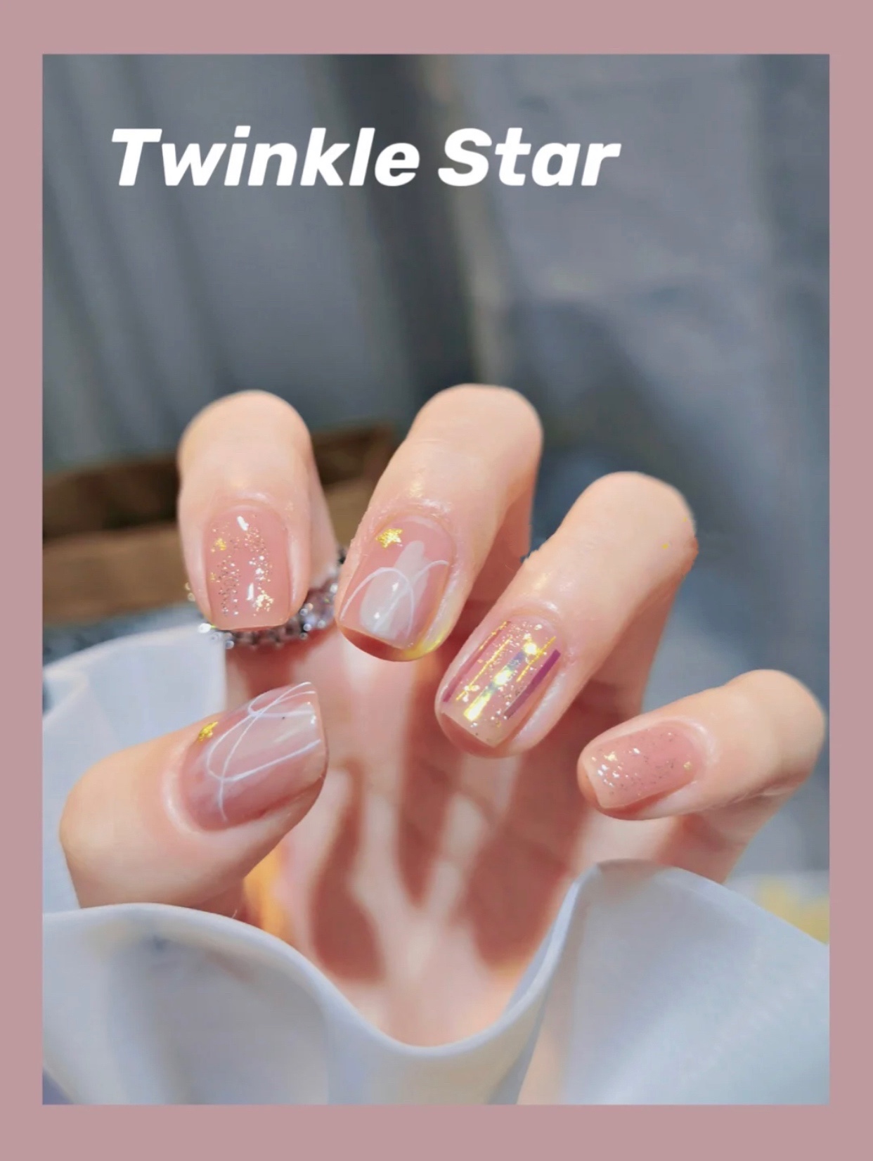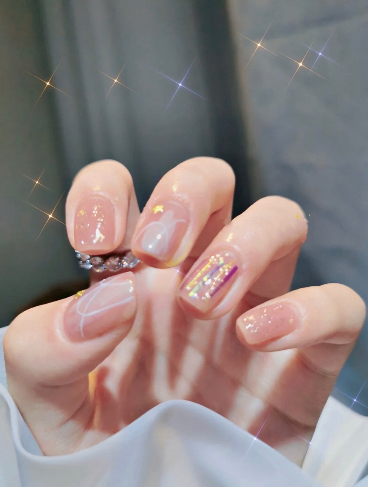 #冰透美甲#星星美甲#少女心美甲#玻璃纸美甲#手绘美甲#blingbling美甲#温柔美甲#约会美甲'
