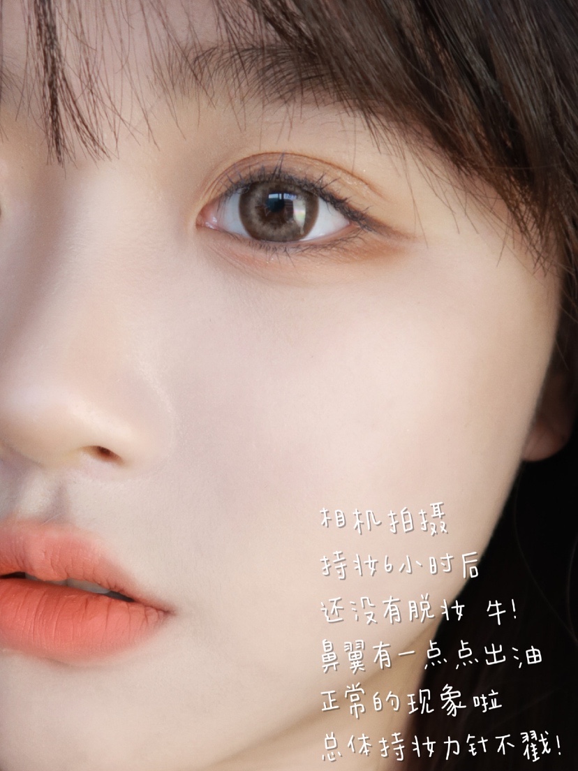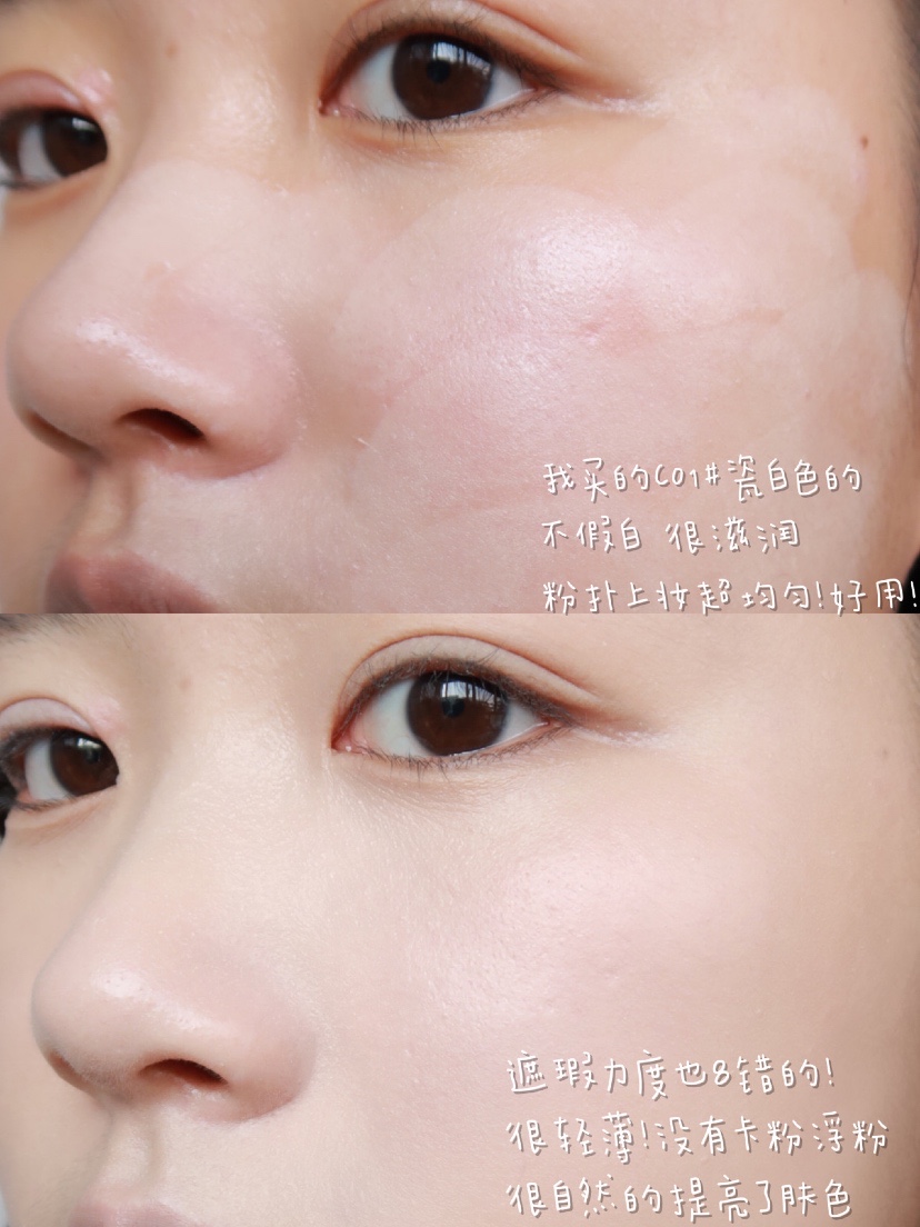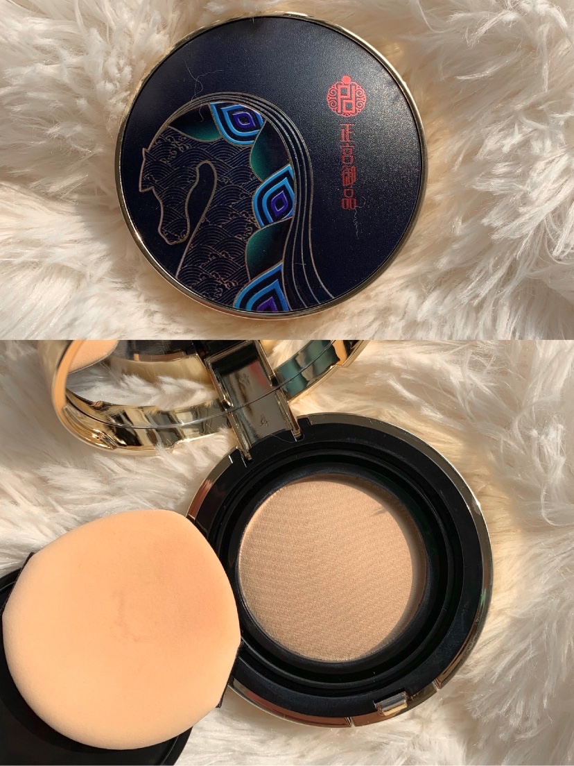 底妆是正宫御品的气垫#C01,上脸润润的蛮轻薄!用粉扑轻轻摁一下就取粉均匀了! 想要奶油肌感不用散粉定妆也ok的,总之就是🏻!持妆6小时鼻翼有一点点出油,但是没脱妆,针不戳!