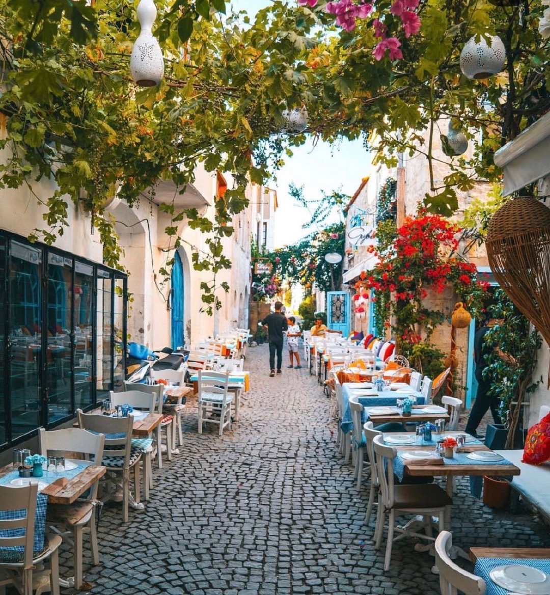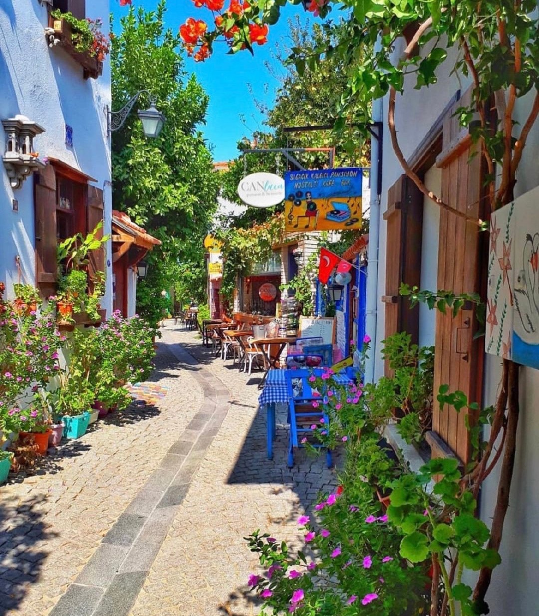 土耳其 Alacati Alacati 小镇位于爱琴海沿岸的切什梅半岛 与希腊隔海相望 希腊战乱时 有不少难民到此避难 所以这里留下了浓厚的希腊气息 小镇面积不大 但是每一栋房子都装扮得相当精致 充满艺术之感 与希腊的小镇有些许相似 但是一些小细节又在时刻提醒你这里是土耳其