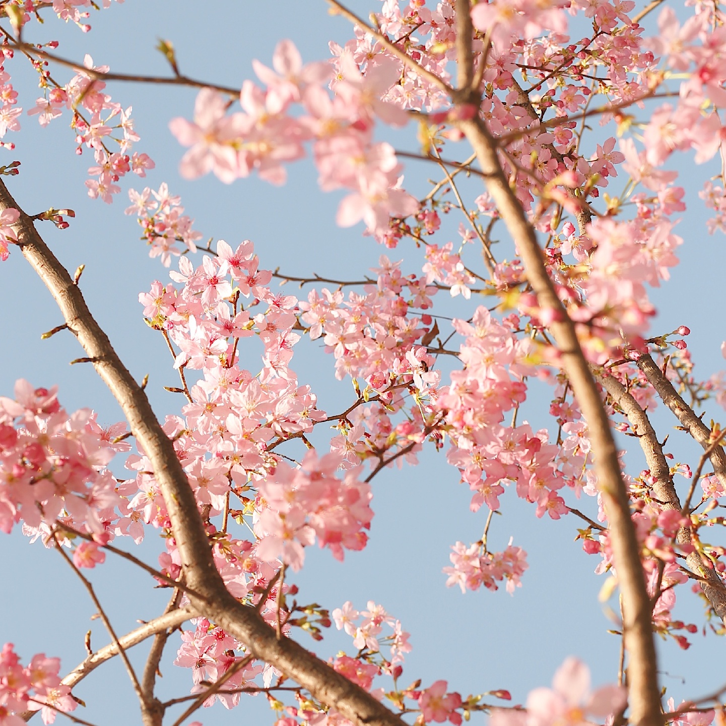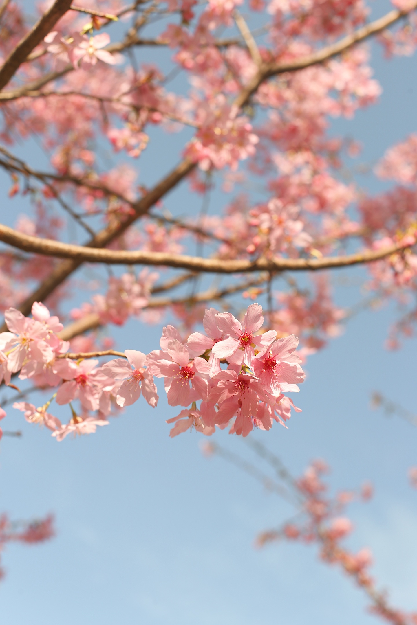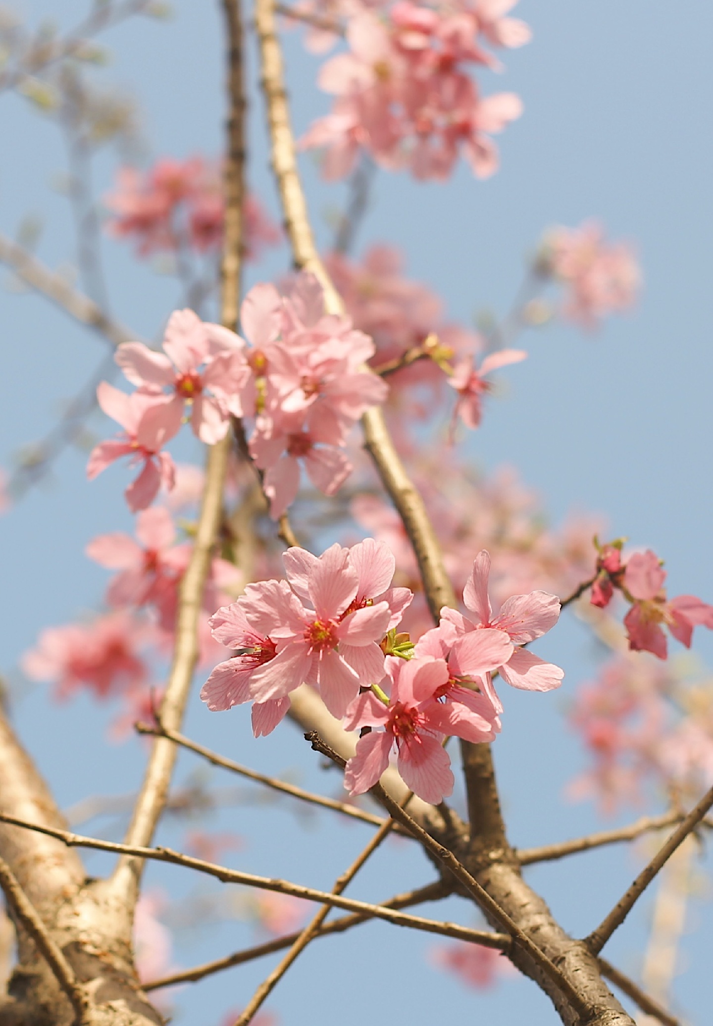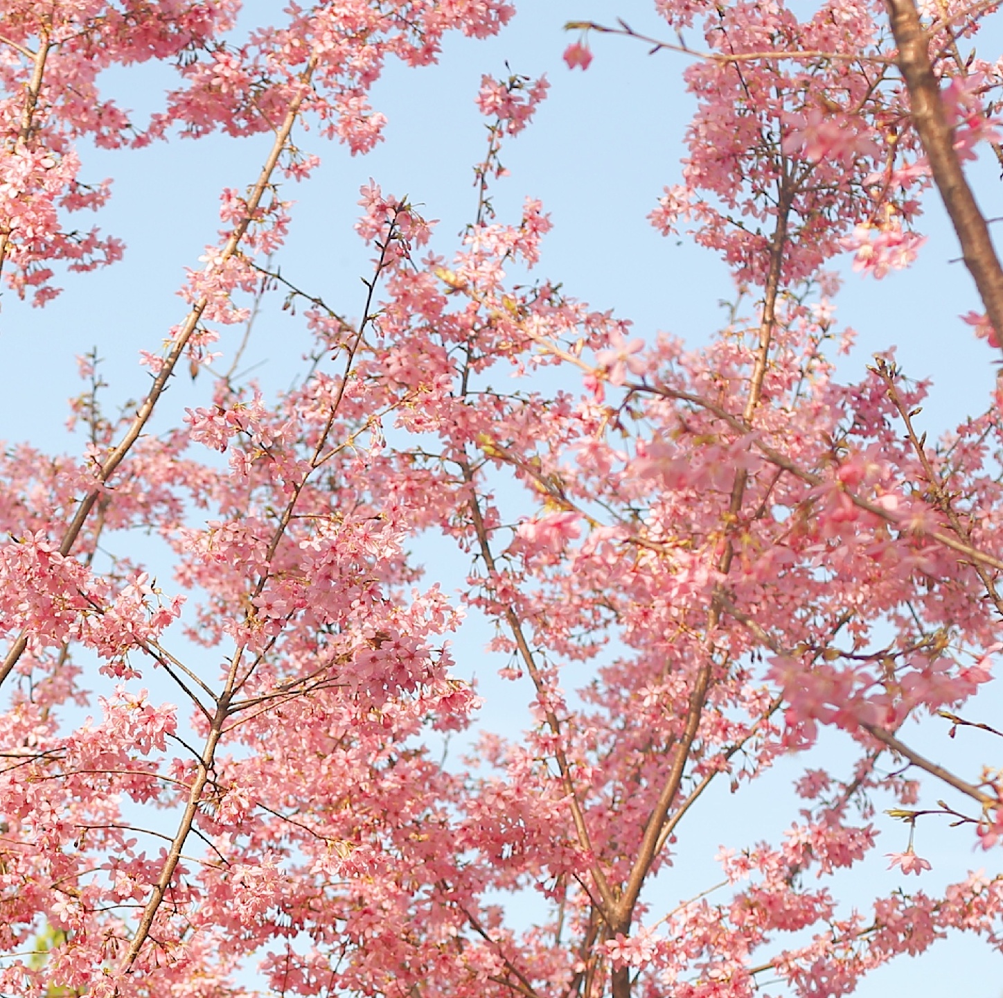 在十八罗汉山北门往前走几百米,就能够看到樱花园。最近天气比较暖,本应4月才开的樱花,现在开的正灿烂。
