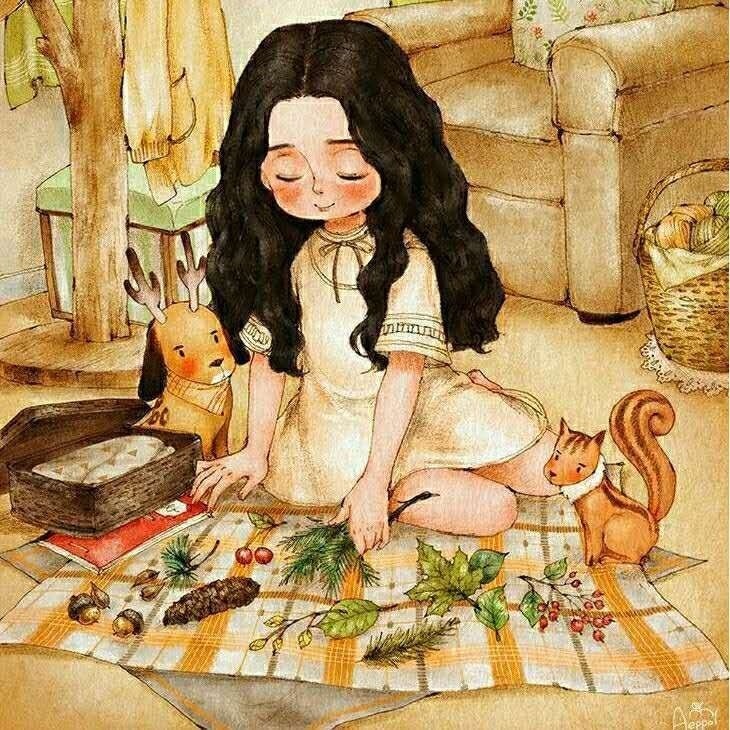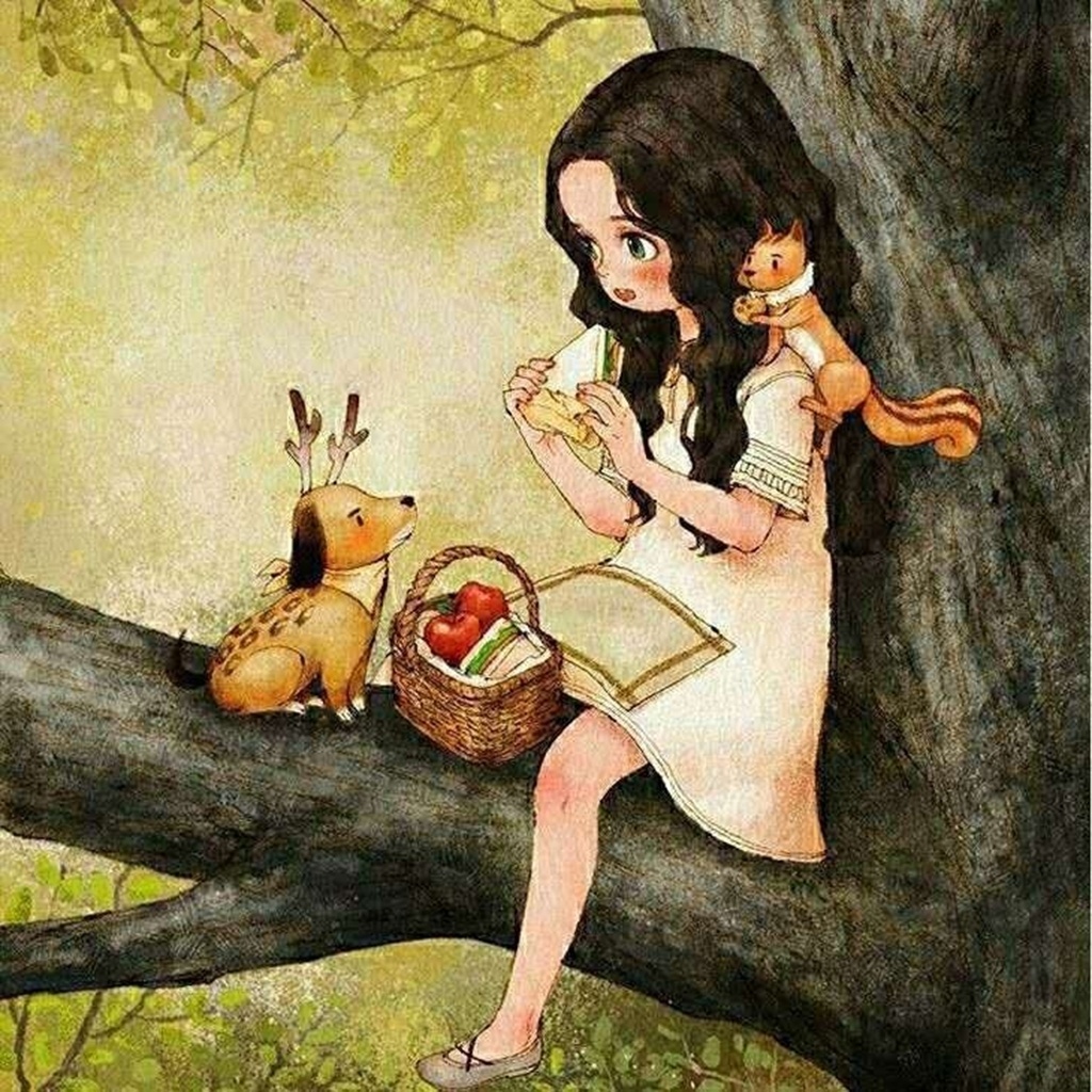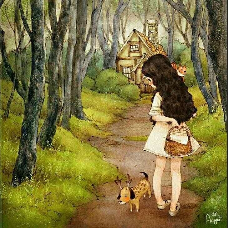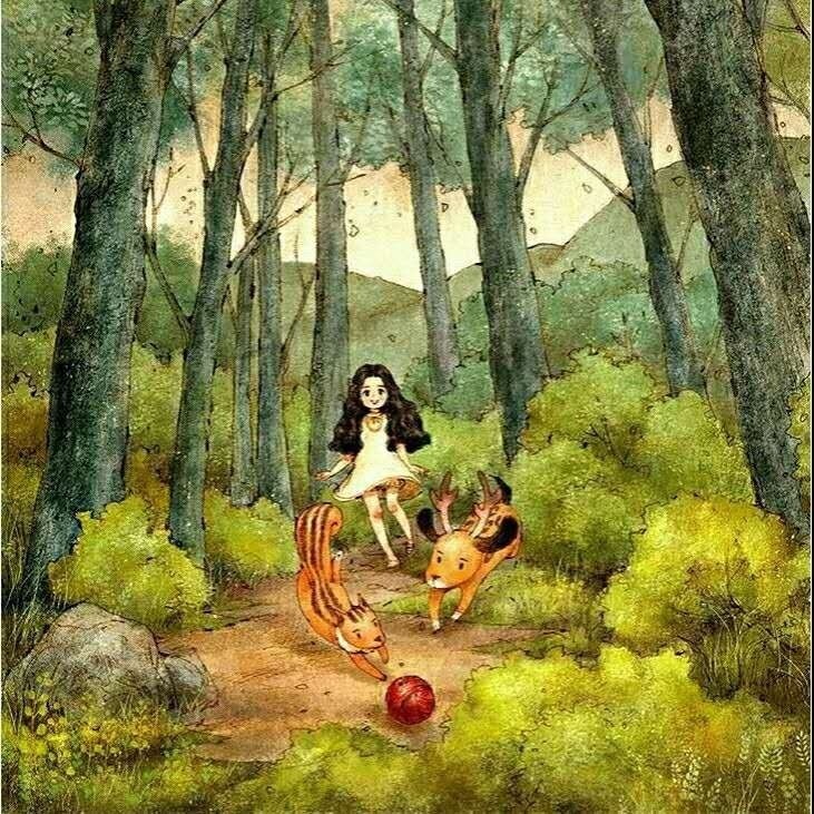 讲述的一个小女孩和长着鹿角的小狗,还有可爱的小松鼠在森林里互相陪伴,一起生活的故事
